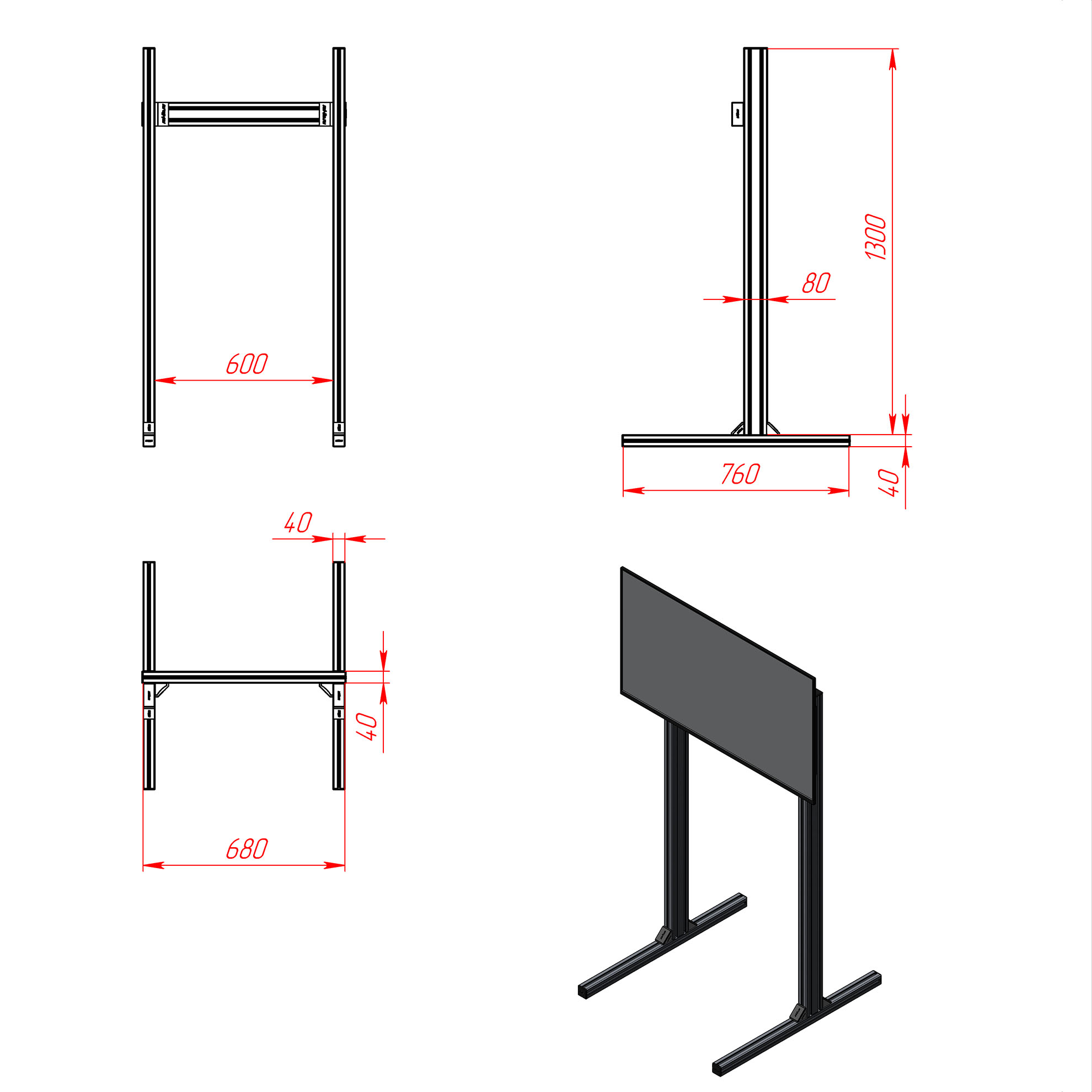 RSI-1S-SCR-4040-S8-BLACK | Сингл скрин для симрейсинга (серия 40 паз 8 мм) Чёрный