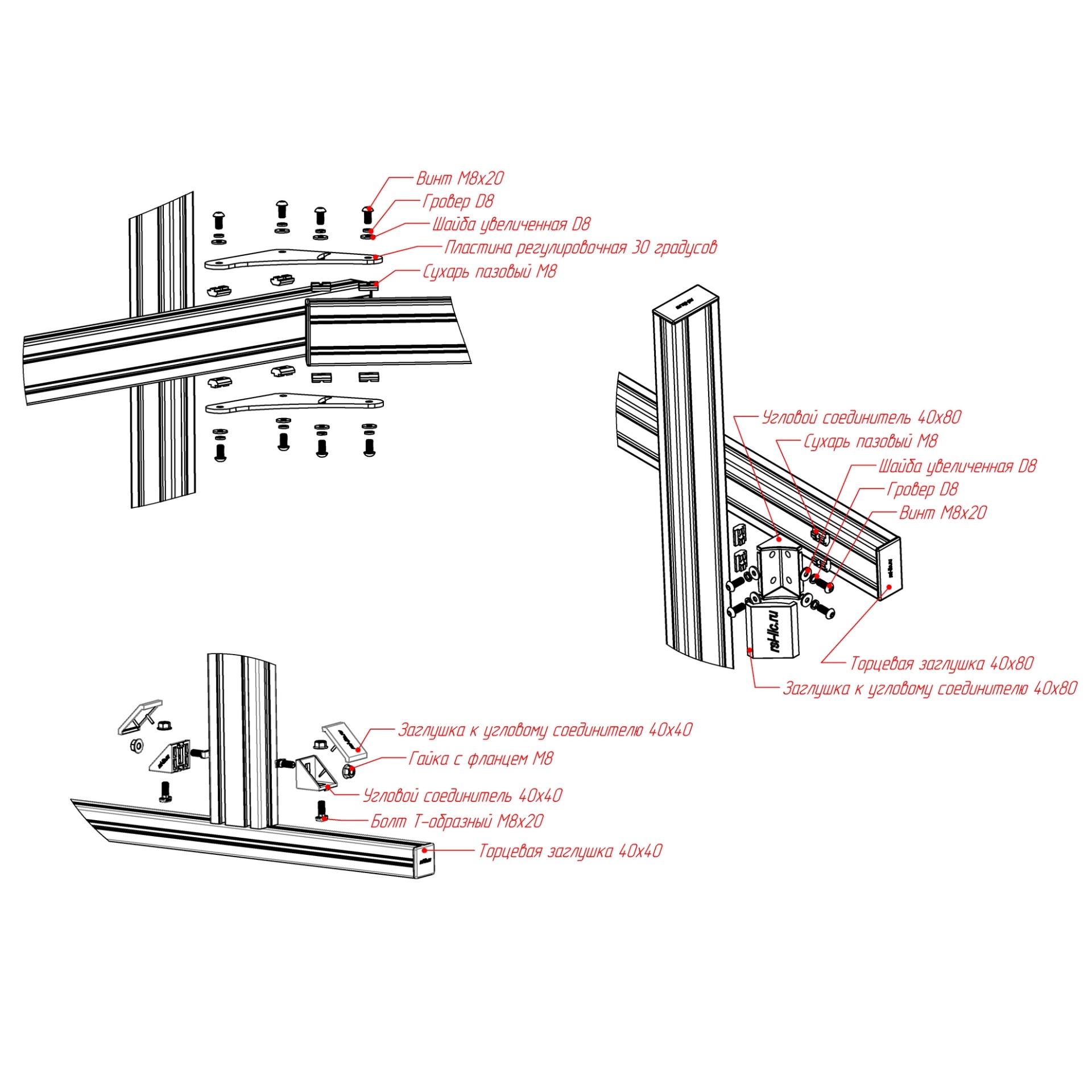 RSI-3T-SCR-4040-S8-A | Трипл скрин для симрейсинга (серия 40 паз 8 мм) Анодированный