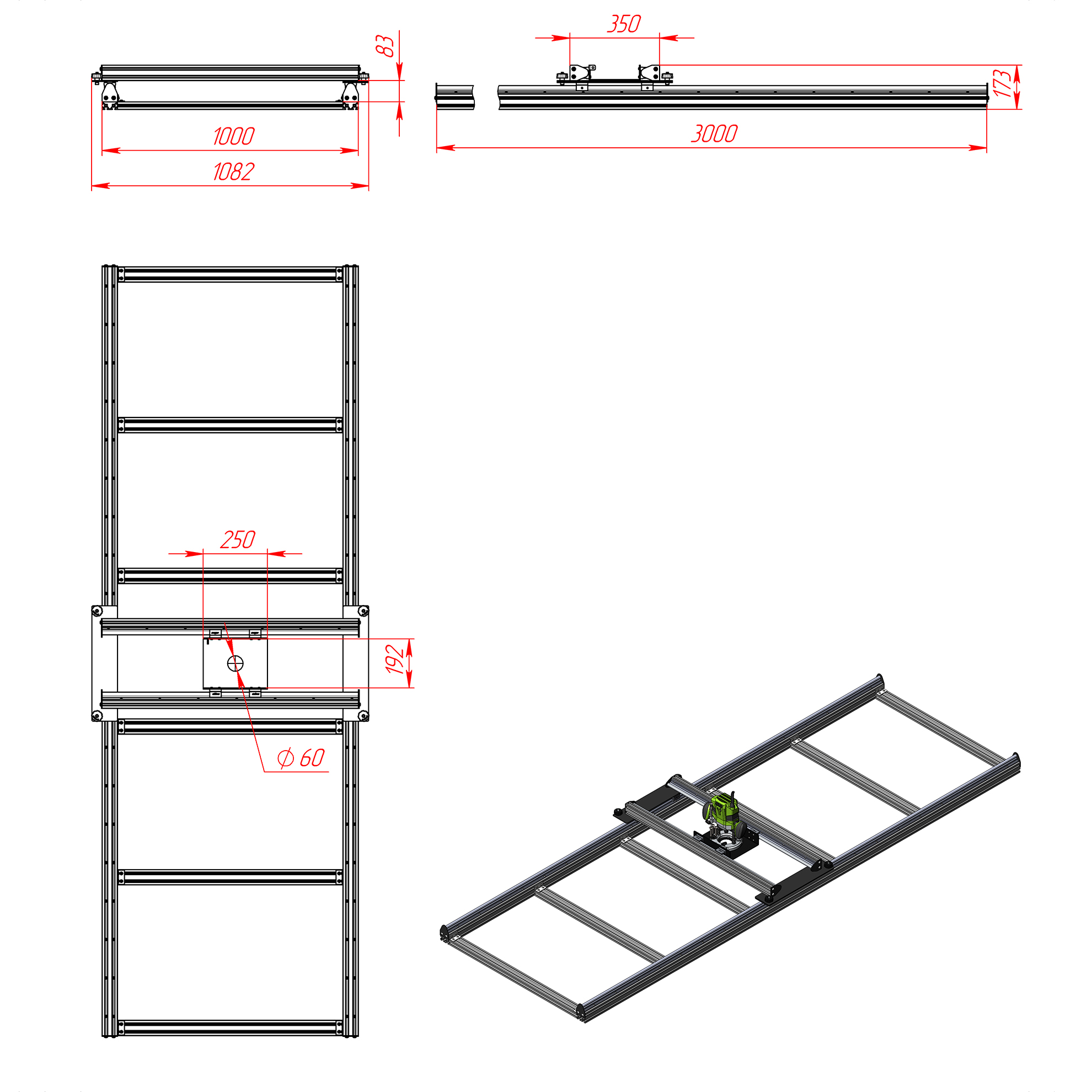 Комплект для самостоятельной сборки станка-калибратора слэбов, разработан для быстрой и точной выправки заготовок больших габаритов при использовании ручных или стационарных фрезеров с подошвой до 190 мм.