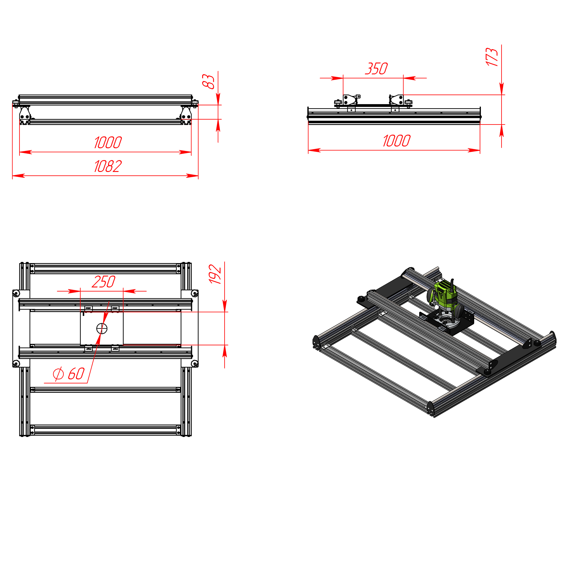 Комплект для самостоятельной сборки станка для обработки слэбов, рассчитан на рабочее поле 800×700 мм. Идеален для столярных мастерских и ремесленников, которым нужен надёжный, компактный портал для фрезерной калибровки больших заготовок.
