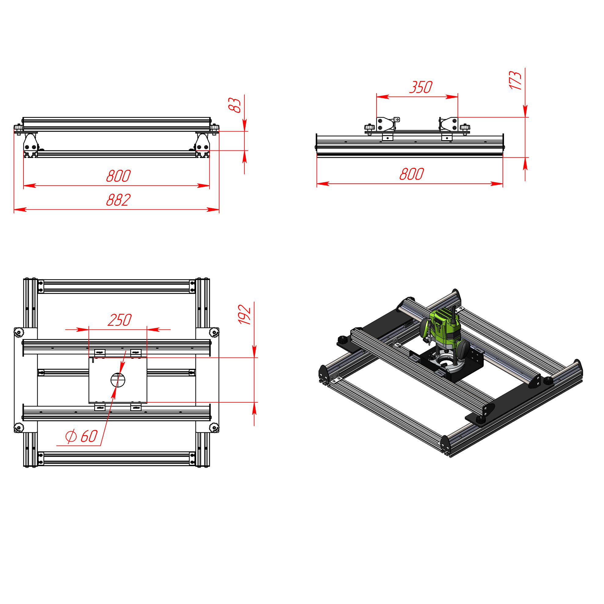| Высота портала (от рабочей поверхности до нижней части поперечного рельса) | 83 мм |