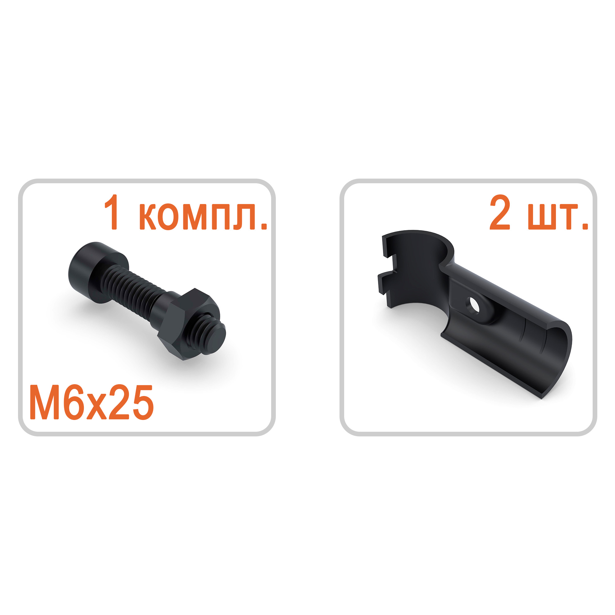 Стандартно комплектуется винтом под внутренний шестигранник и гайкой.|