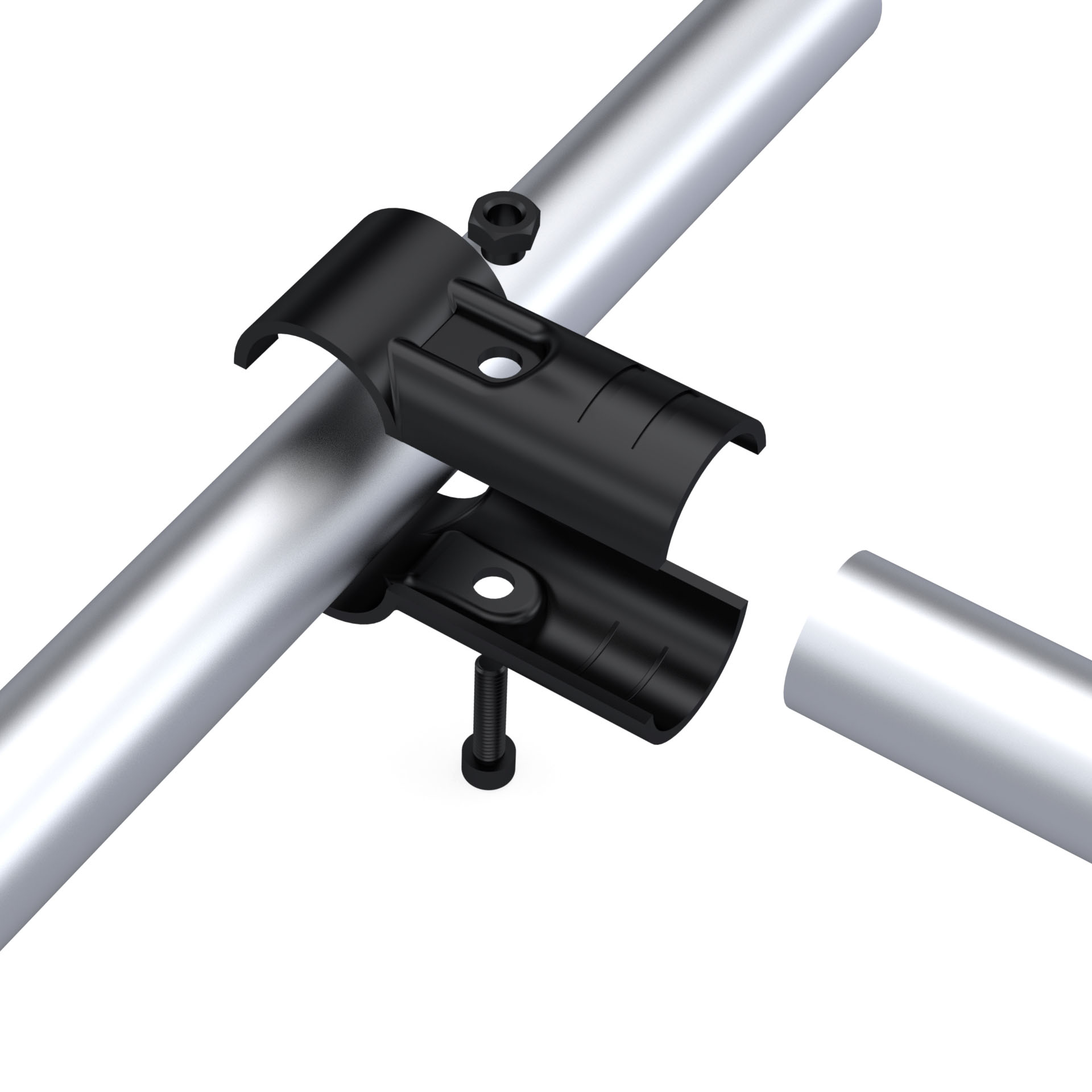 Кронштейн DF1B - это соединительный элемент, разработанный для перпендикулярного трёхстороннего соединения из двух круглых труб с наружным диаметром 28 мм в модульных трубных системах.