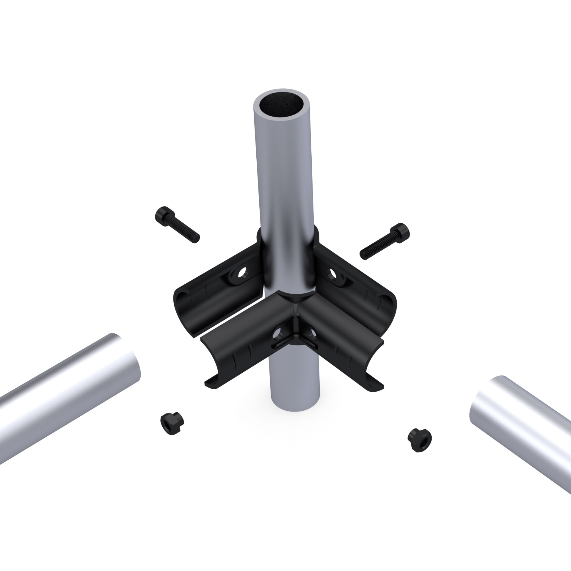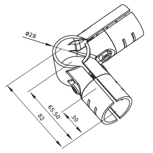 Кронштейн DF2B - это соединительный элемент, разработанный для перпендикулярного трёхстороннего соединения из трёх круглых труб с наружным диаметром 28 мм в модульных трубных системах.