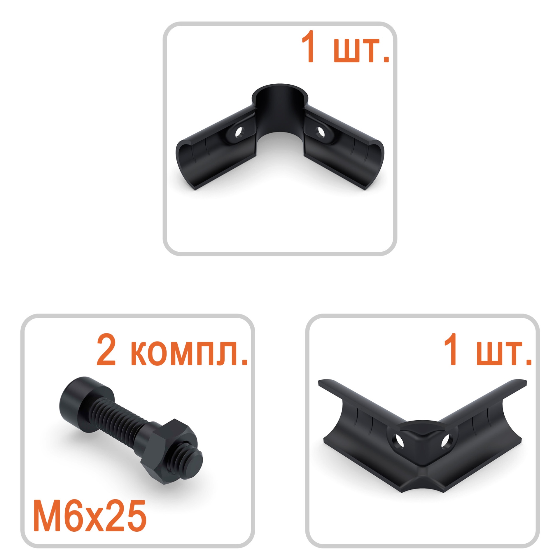 Стандартно комплектуется двумя винтами под внутренний шестигранник и двумя гайками.