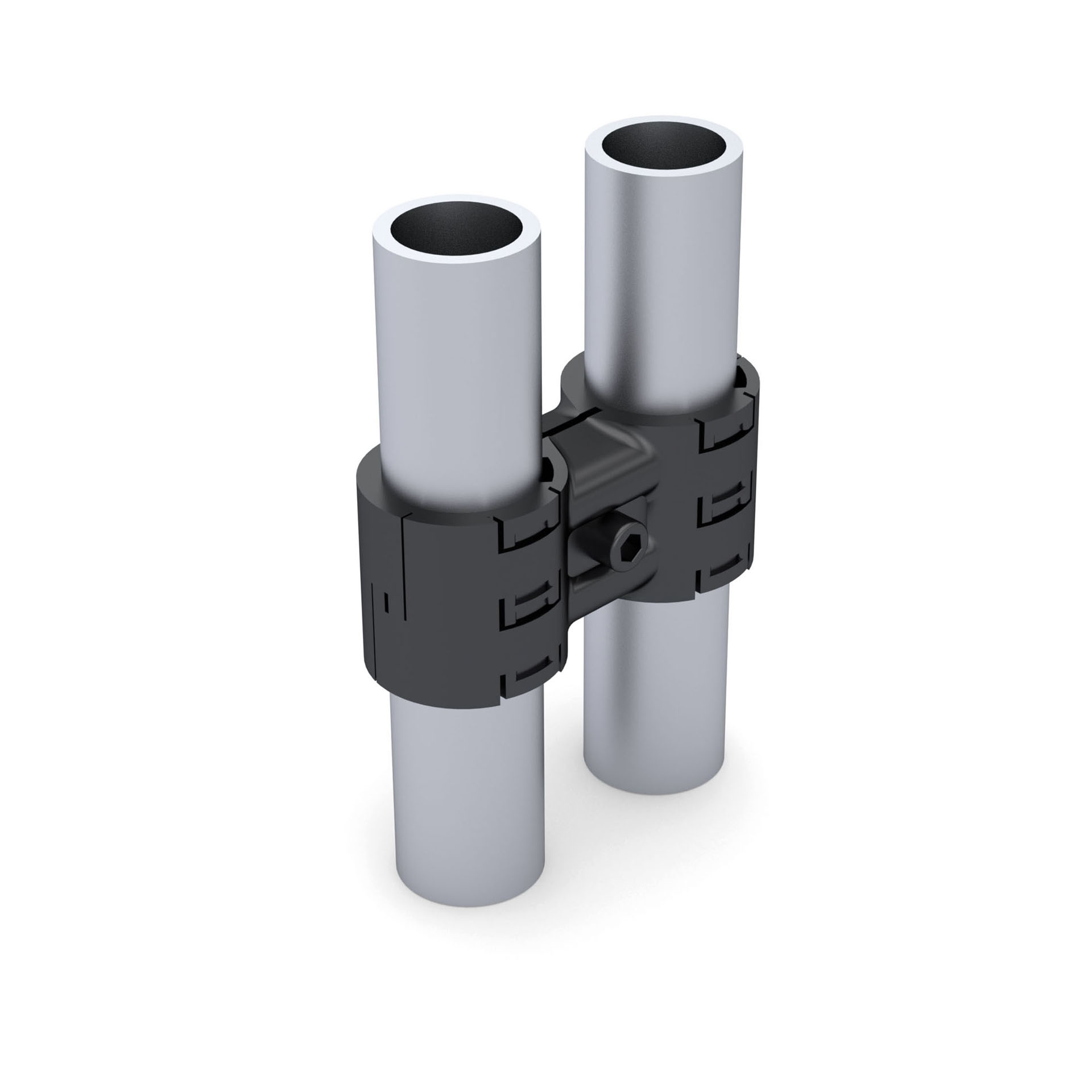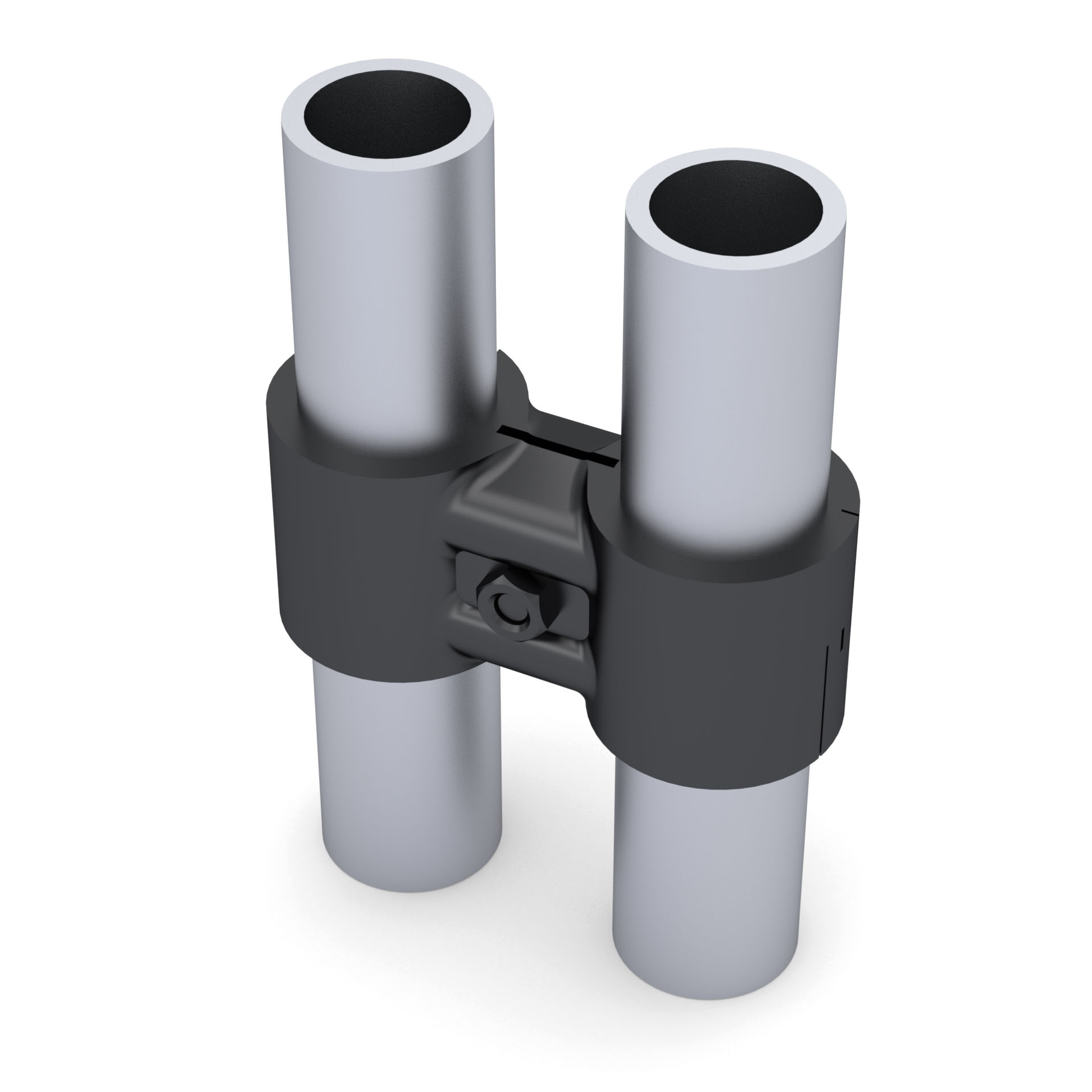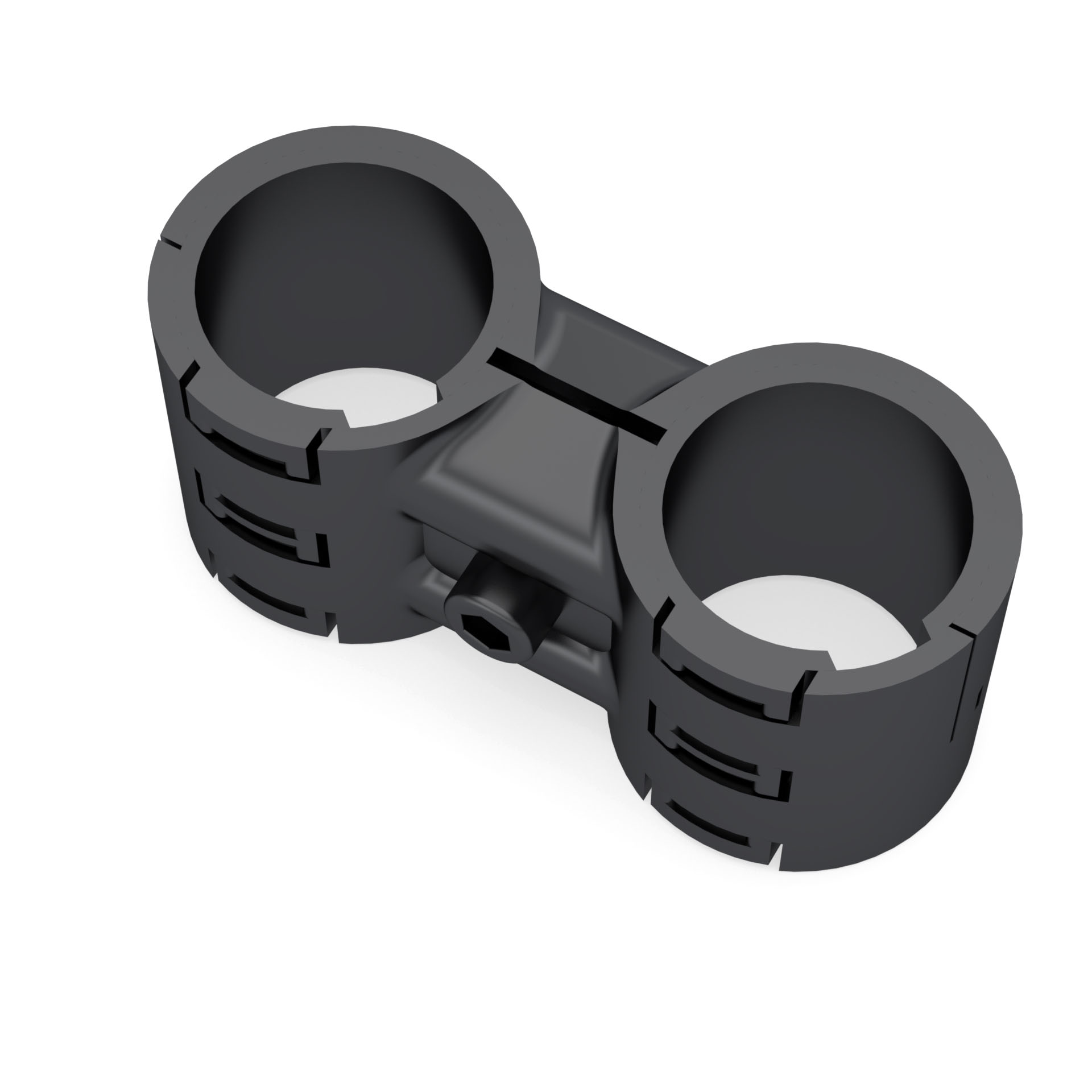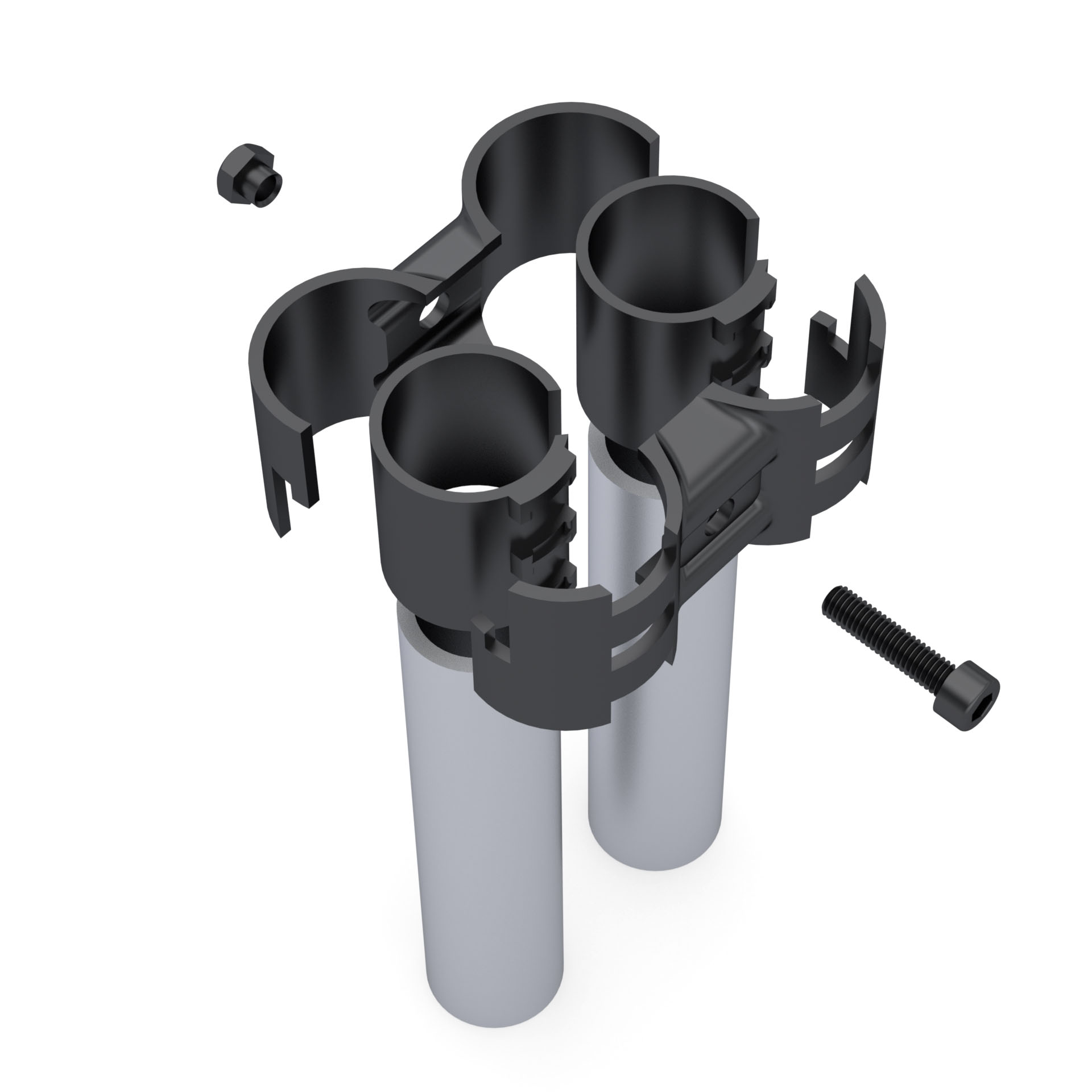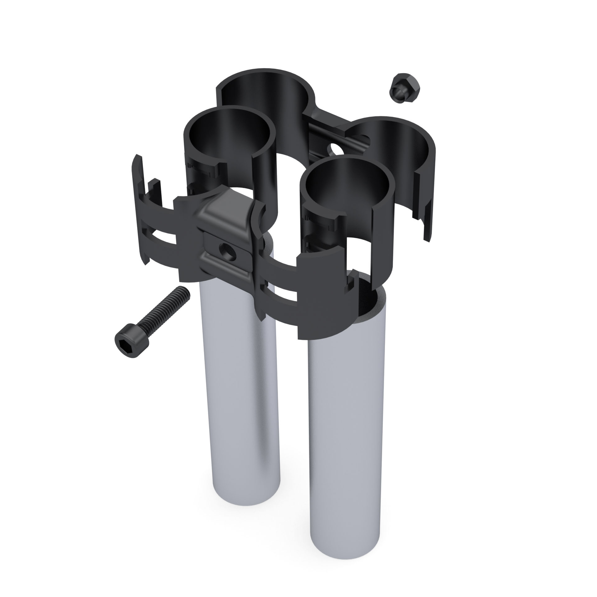 Кронштейн DF8B - это соединительный элемент, разработанный для параллельного соединения двух круглых труб с наружным диаметром 28 мм в модульных трубных системах. Данная модификация имеет специальные вставки для более надёжного крепления.