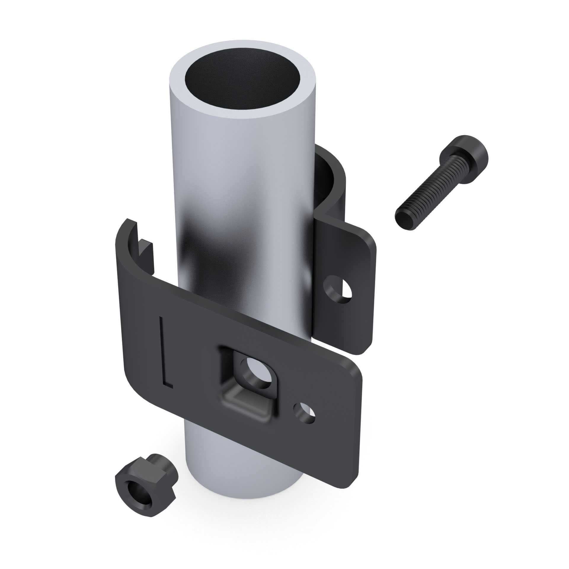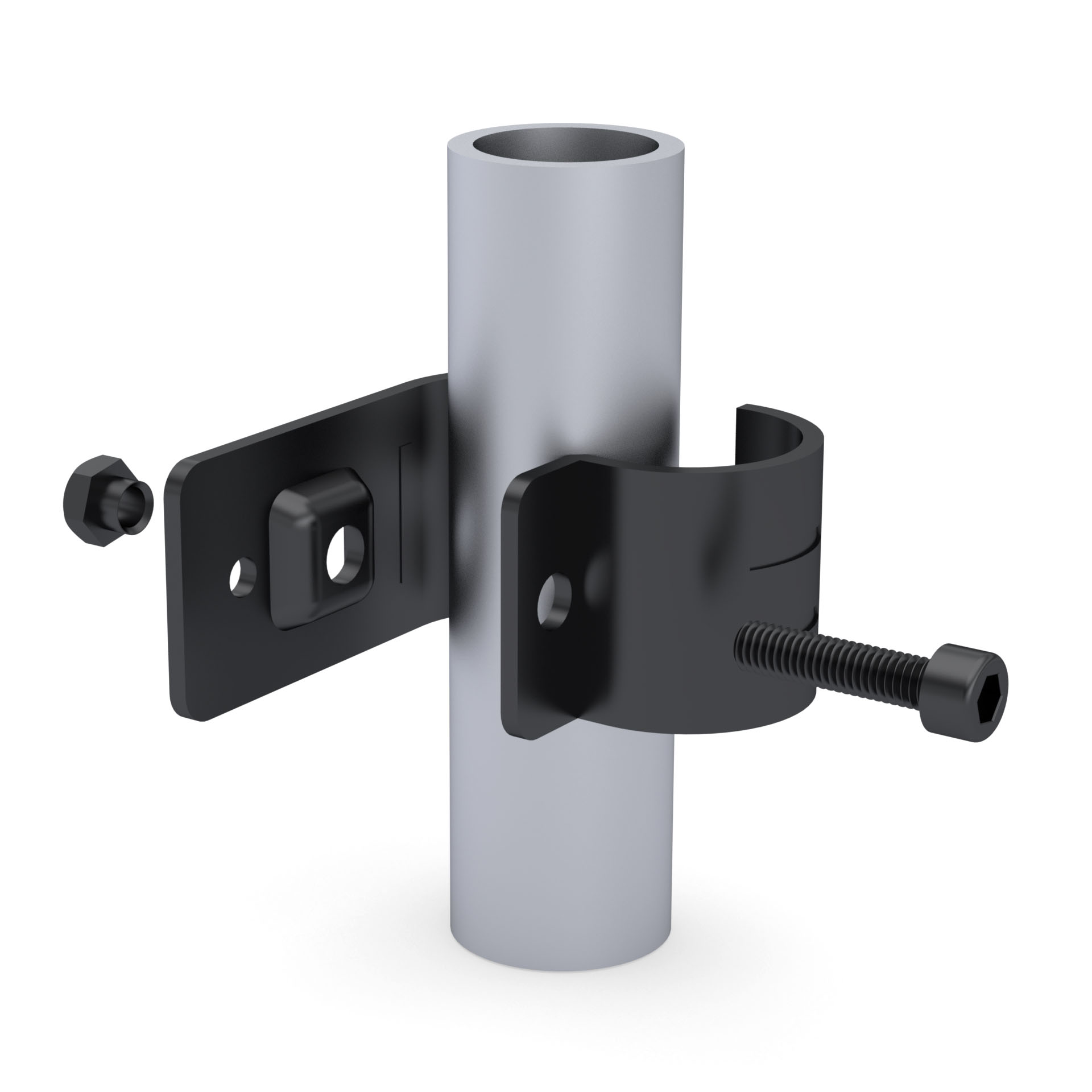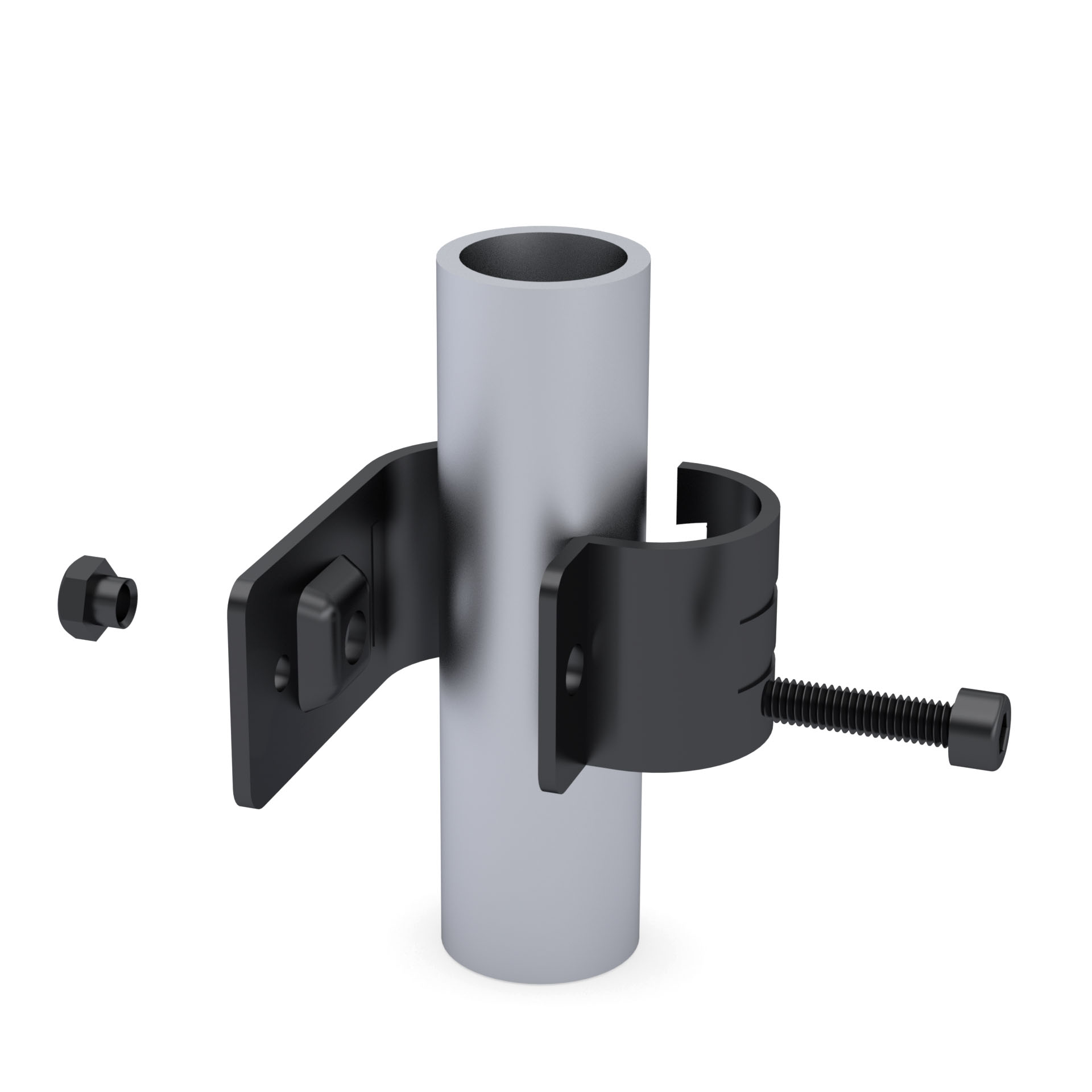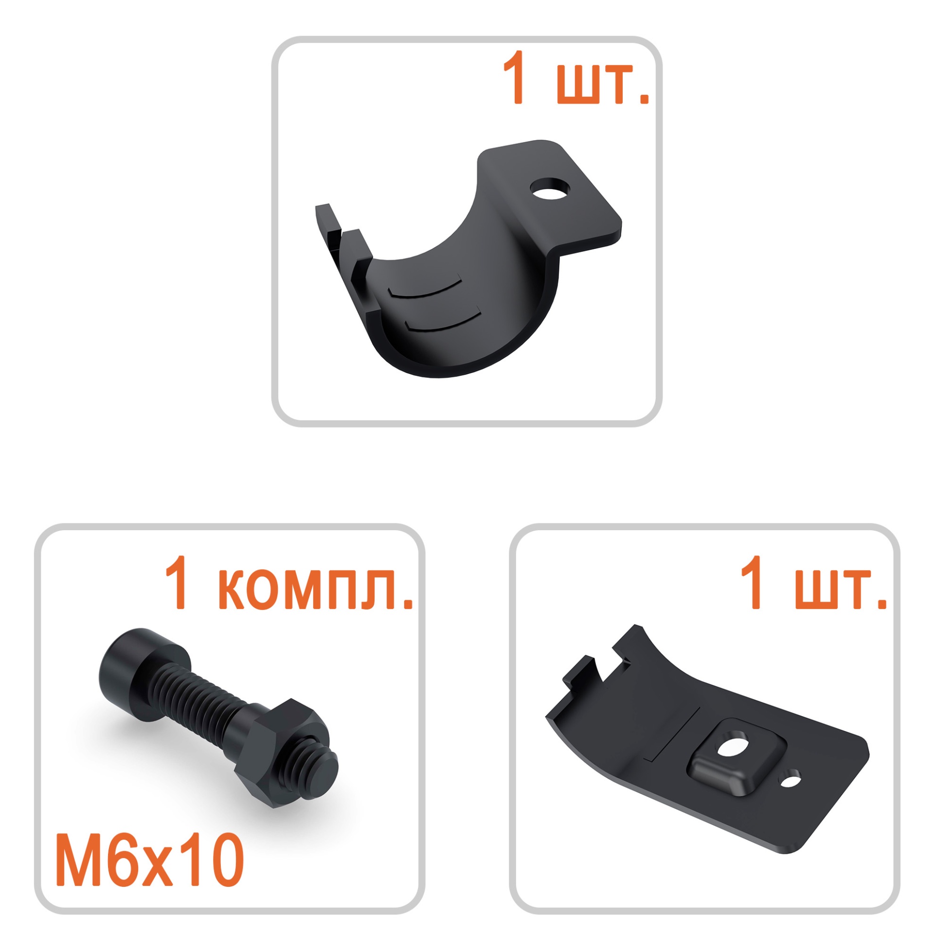 Стандартно комплектуется одним винтом под внутренний шестигранник и одной гайкой.