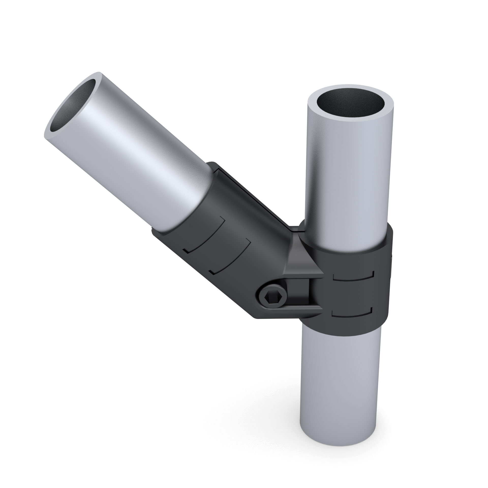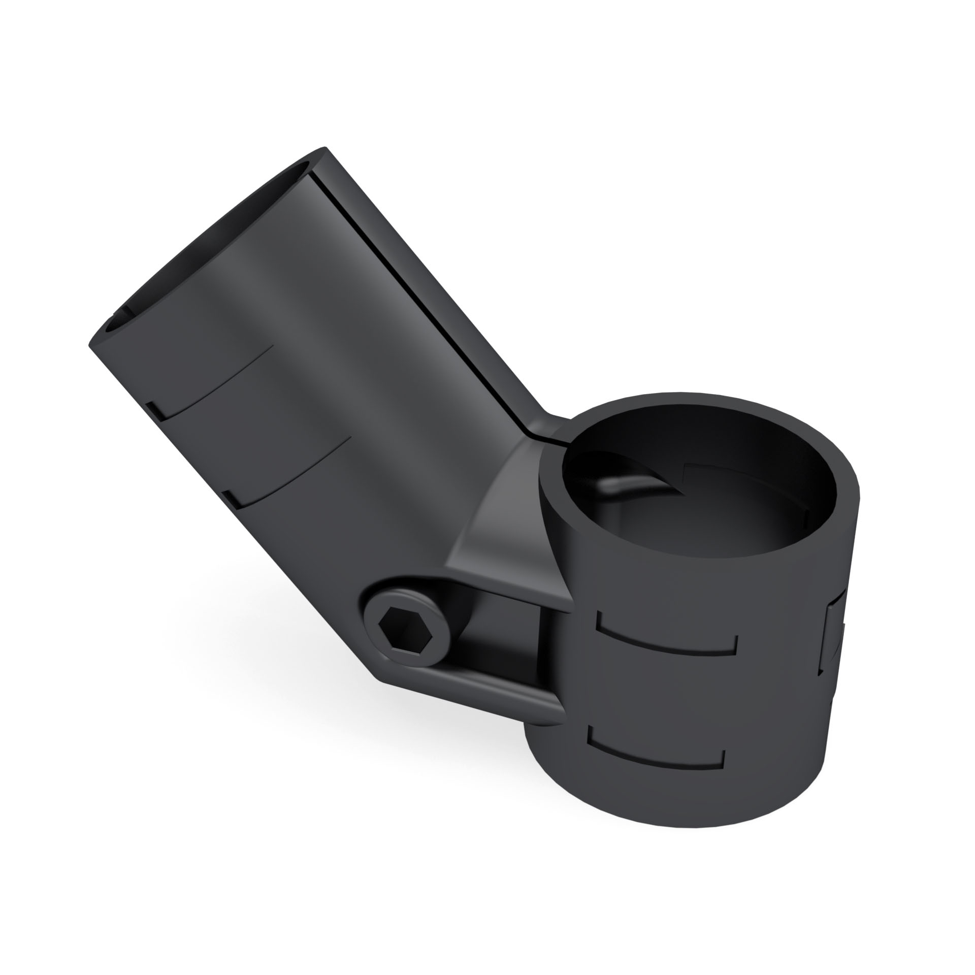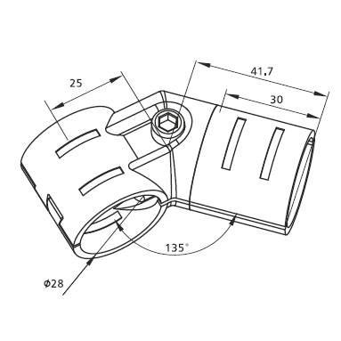 Кронштейн DF14B - это соединительный элемент, разработанный для соединения двух круглых труб с наружным диаметром 28 мм под углом 135 градусов с листом металла в модульных трубных системах.