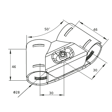 Кронштейн DF16B - это соединительный элемент, разработанный для соединения двух круглых труб с наружным диаметром 28 мм под углом 50 градусов модульных трубных системах.