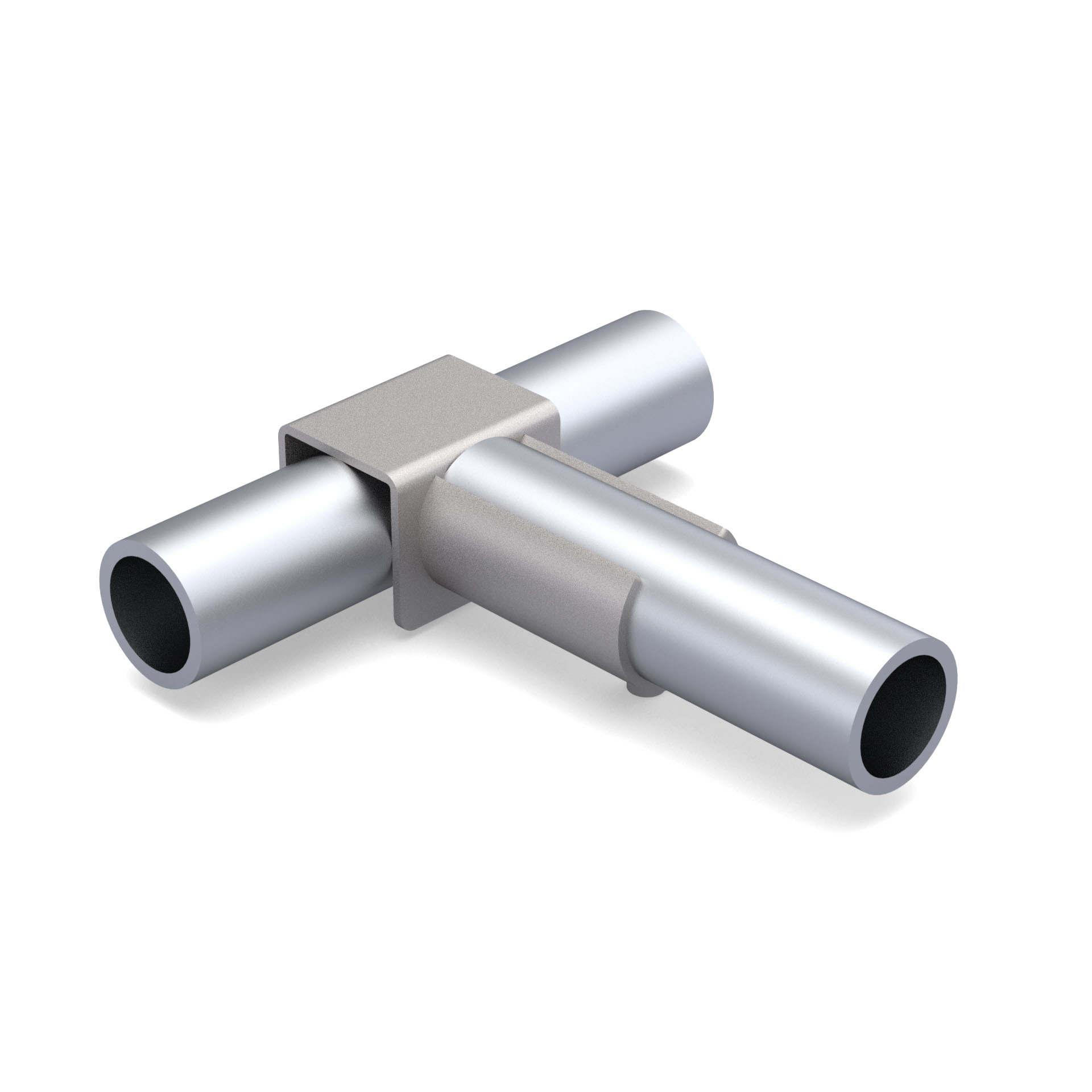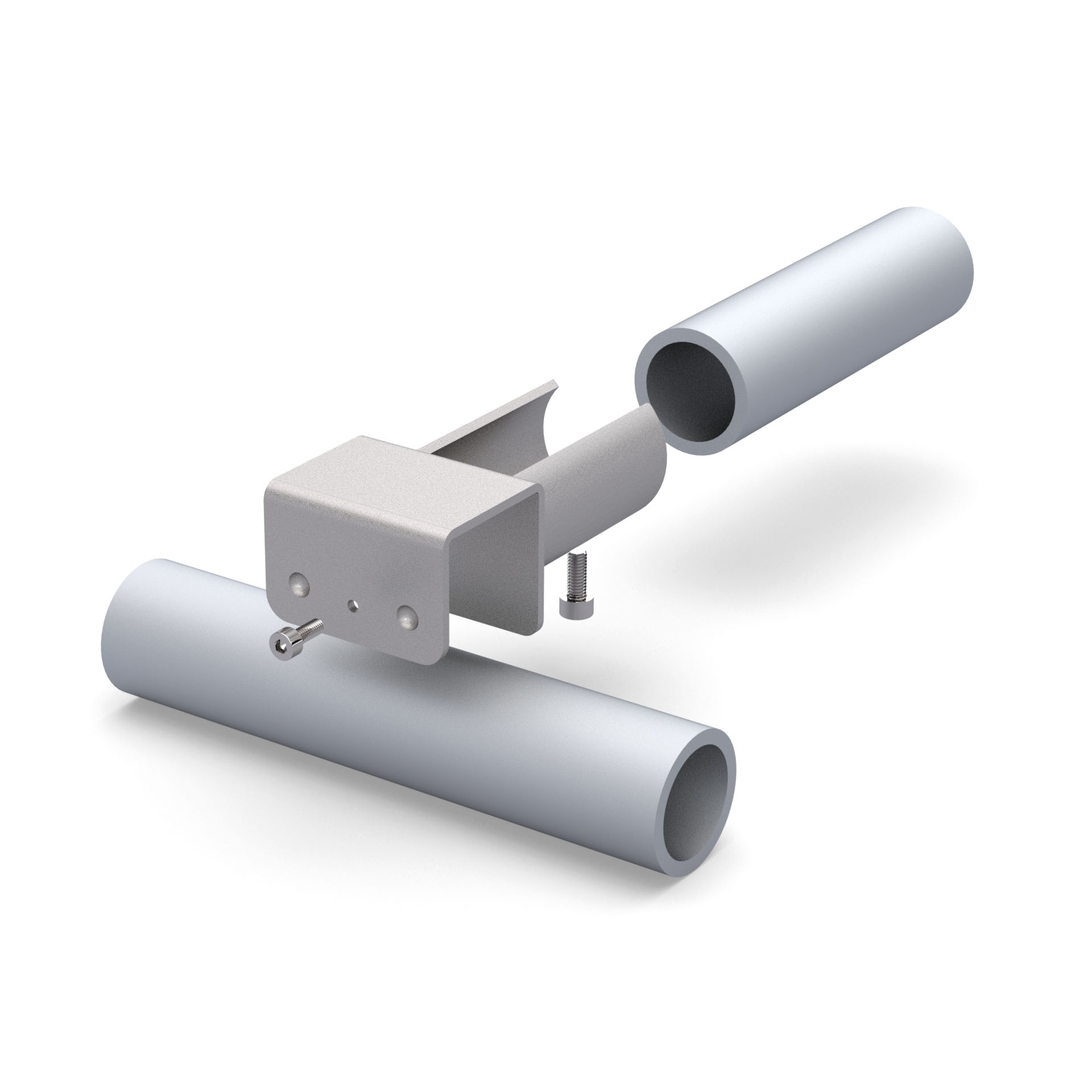 Кронштейн для трубы D28 тип A RSI-FH2028A - это соединительный элемент, разработанный для перпендикулярного соединения двух круглых труб с наружным диаметром 28 мм в модульных трубных системах.
