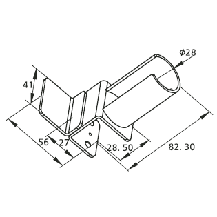 Кронштейн для трубы D28 тип B RSI-FH2028B - это соединительный элемент, разработанный для перпендикулярного соединения двух круглых труб с наружным диаметром 28 мм в модульных трубных системах.