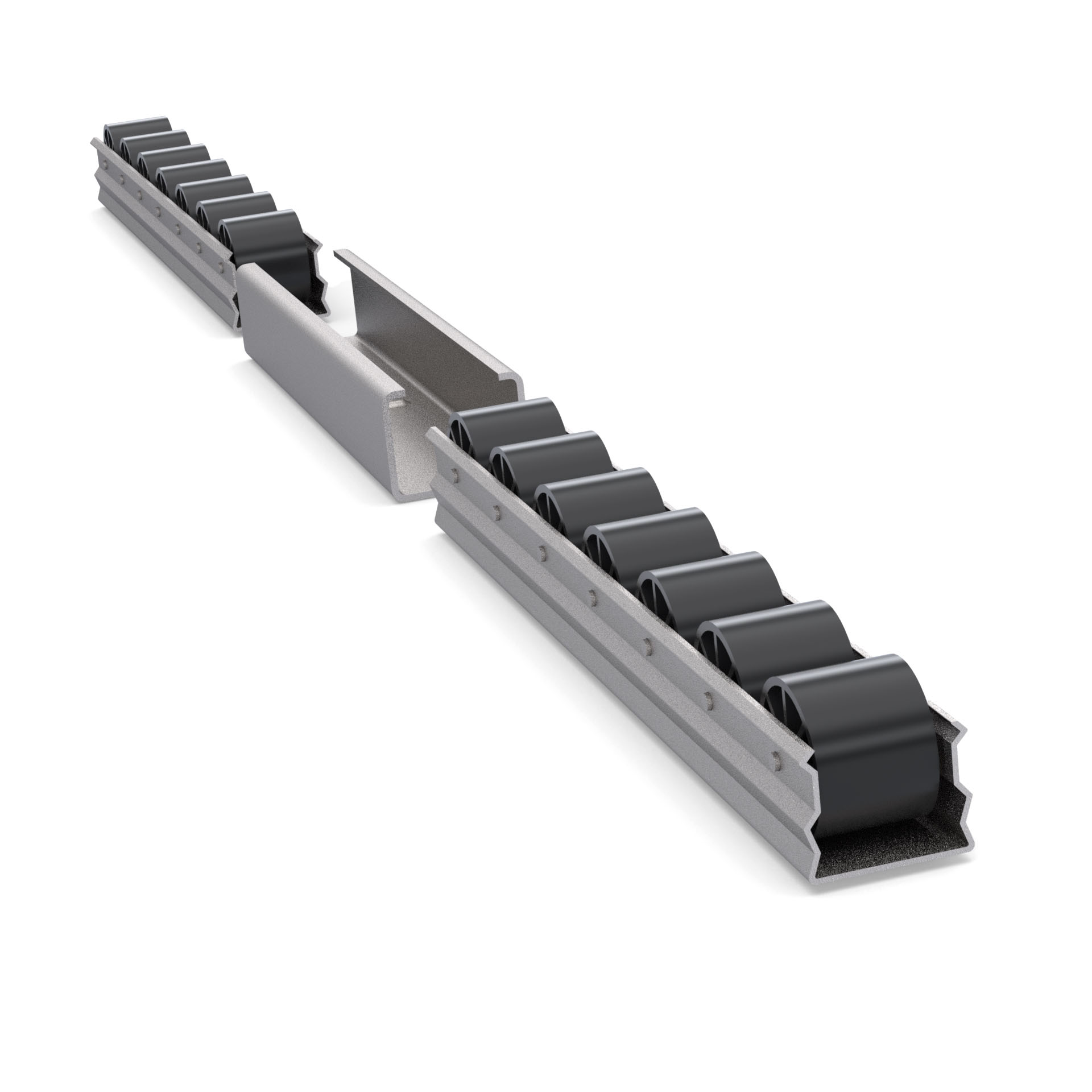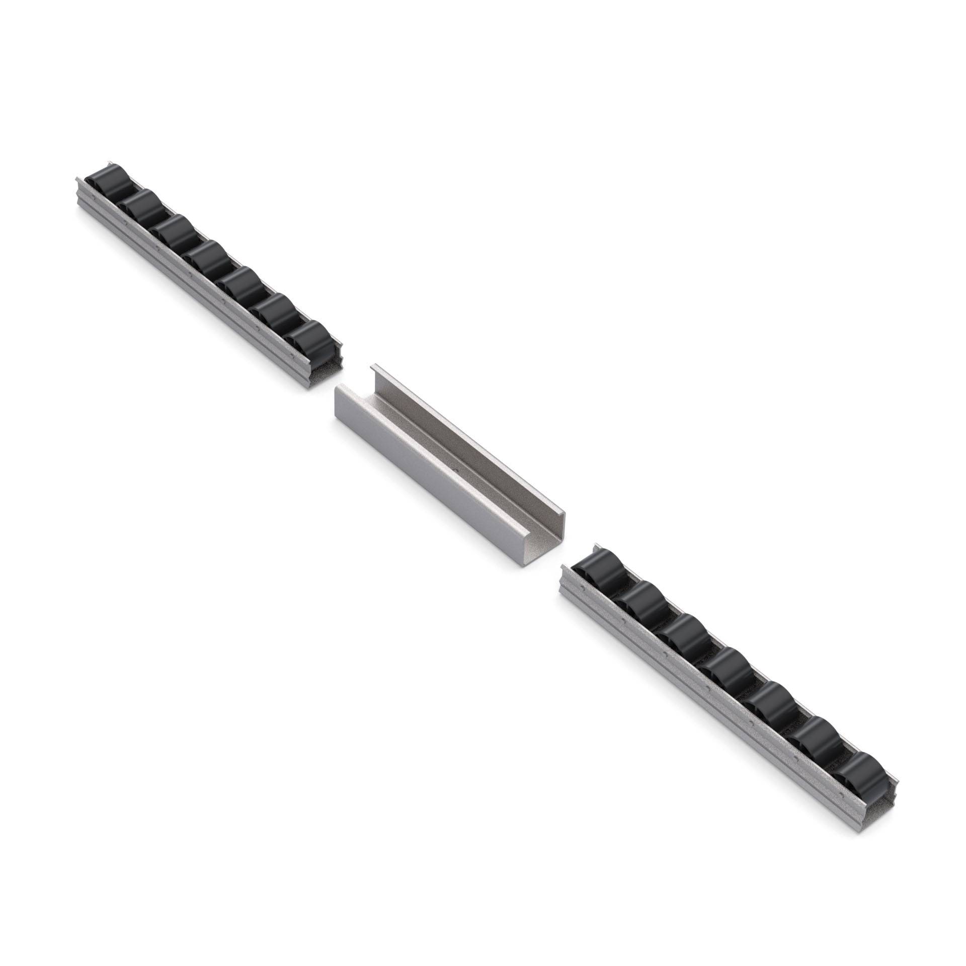 Кронштейн для стальной направляющей RSI-STE-33 тип K - это соединительный элемент, разработанный для параллельного соединения роликовых направляющих шириной 37 мм в модульных трубных системах.