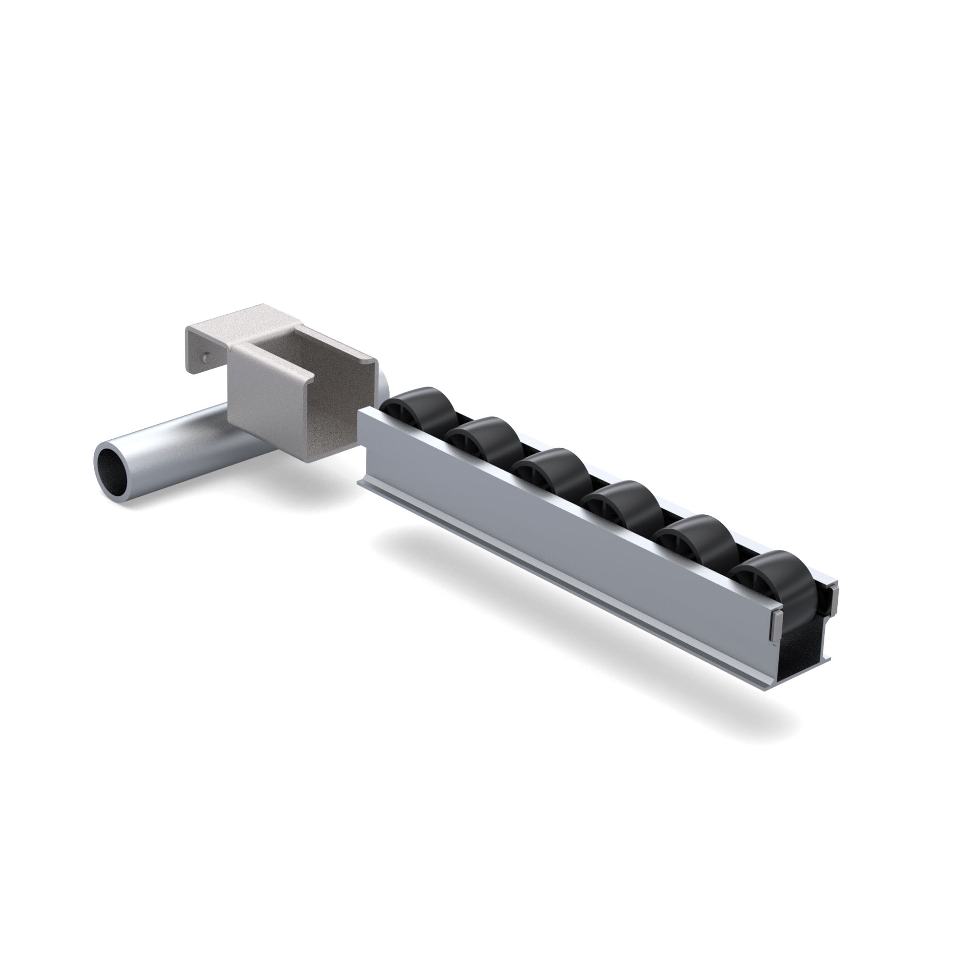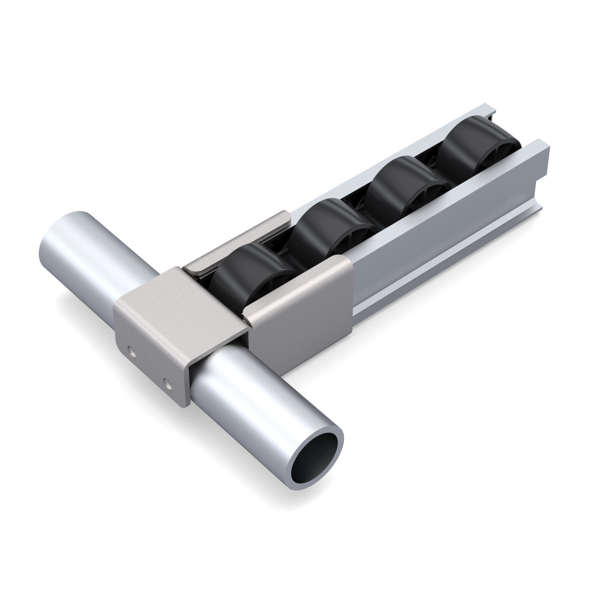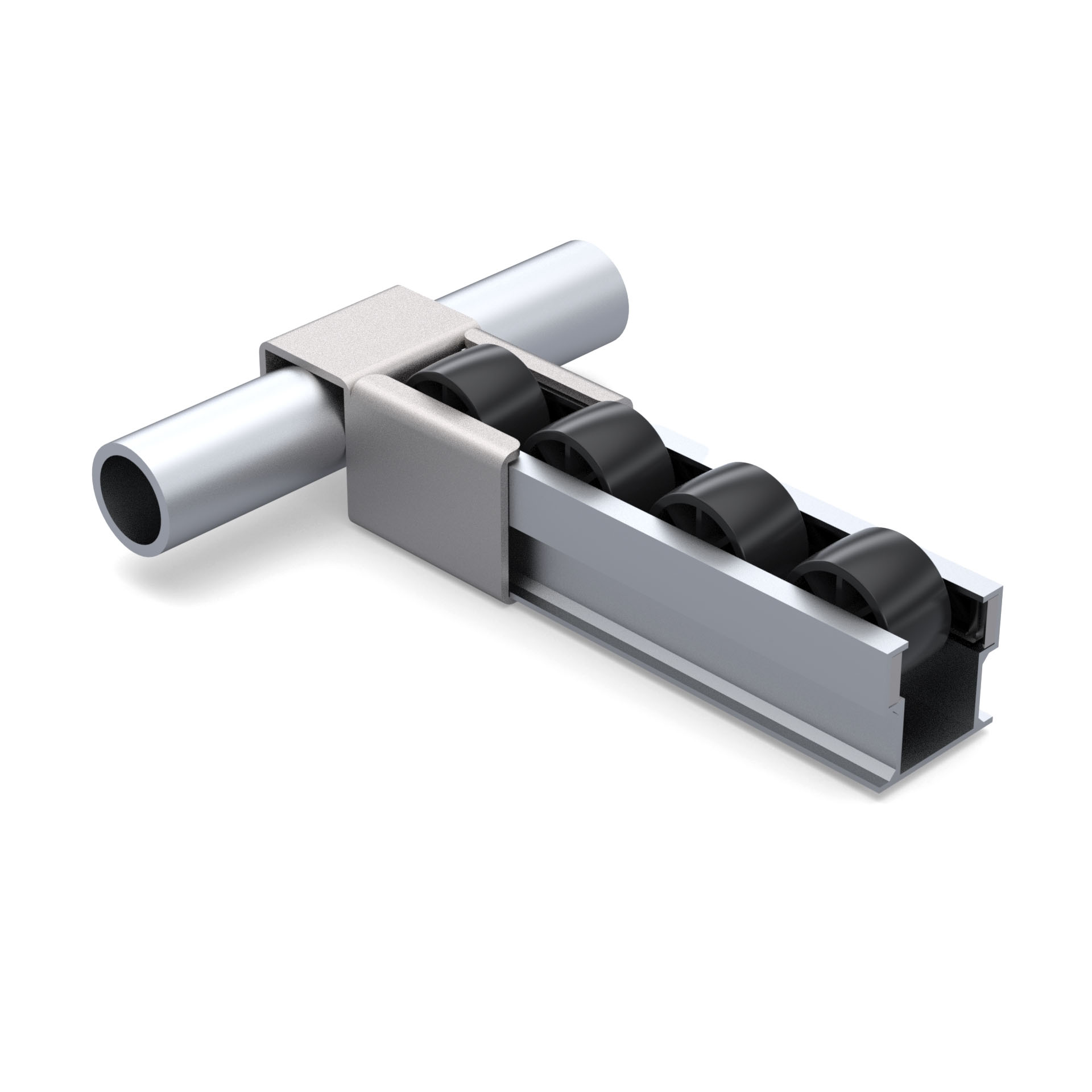 Кронштейн для алюминиевой направляющей RSI-ALU-2045 тип А - это соединительный элемент, разработанный для перпендикулярного соединения круглой трубы с наружным диаметром 28 мм с роликовой направляющей в модульных трубных системах.