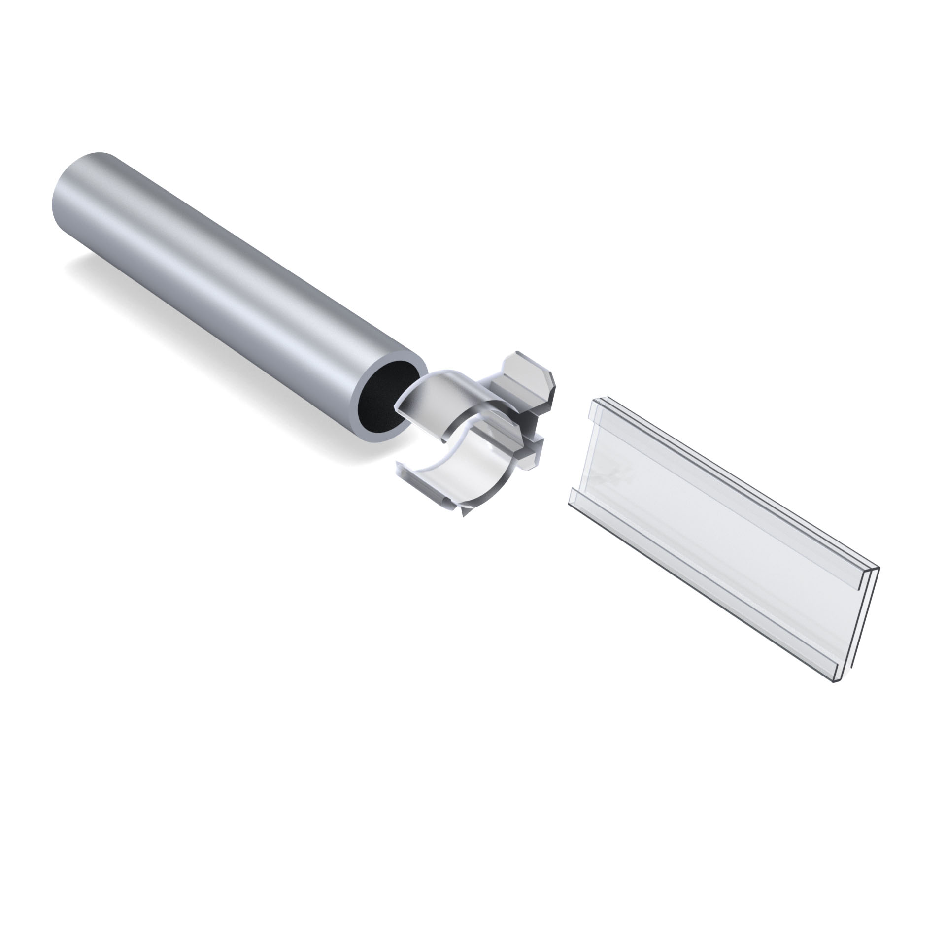 Бейдж 28 мм F-2082 устанавливается на специальное крепление F-120 и далее крепится на трубу с наружным диаметром 28 мм. Такой тип креплений в основном применяется в модульных трубных системах.