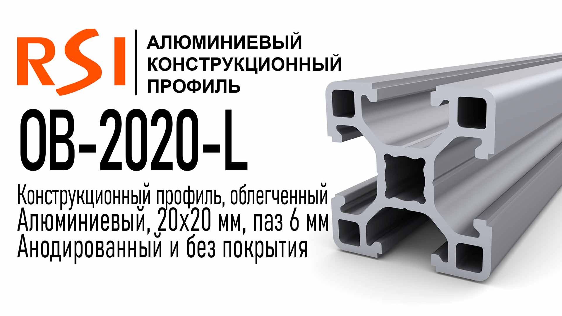 OB-2020-L-BP | Профиль облегченный 20х20 мм. Паз 6 мм (Без покрытия)