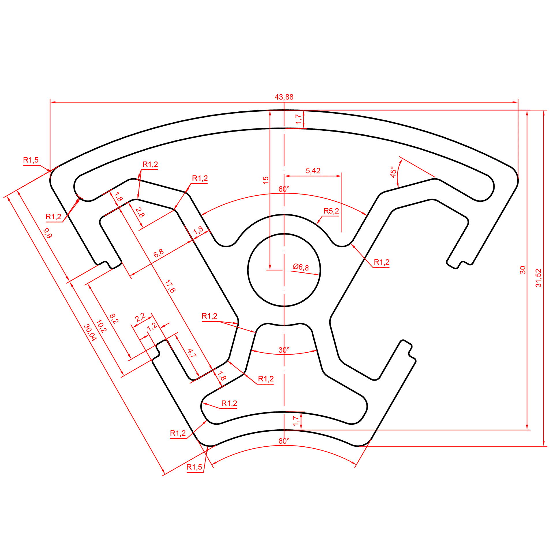 OB-30-UGOL60-R-BP | Профиль 30х30 мм закругленный угол 60 паз 8 мм (без покрытия)