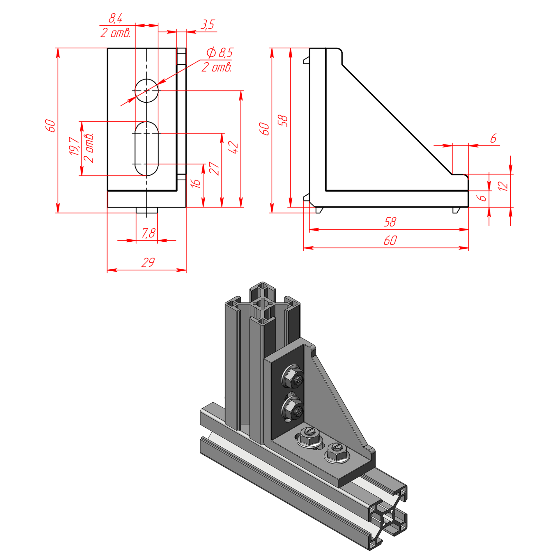 8104s | Стальной угловой соединитель 60х30 мм усиленный