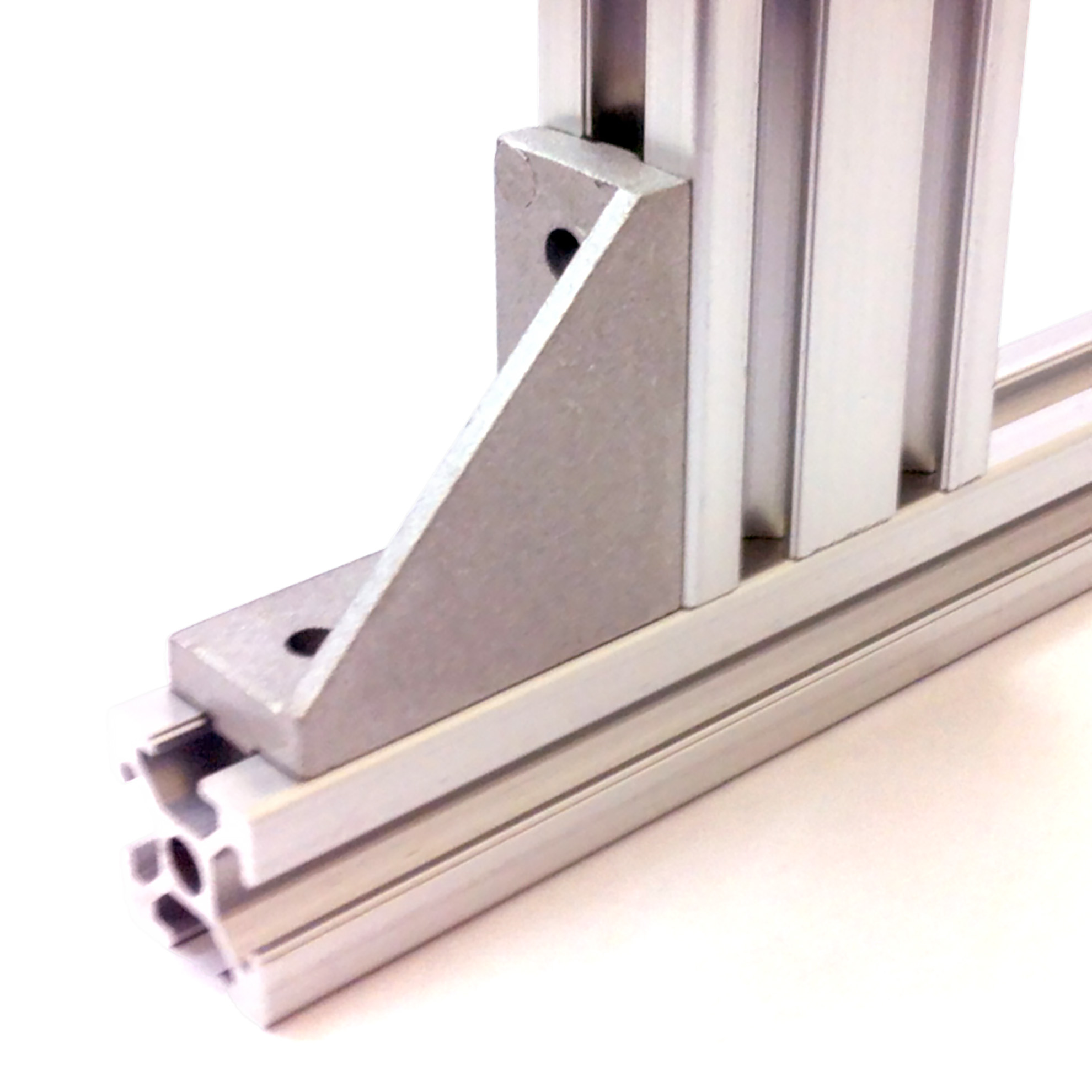 Характерное отличие заключается в отсутствии подготовки профилей и высокой прочностью соединения. Данный уголок является одним из самых крепких из всей двадцатой серии. Многие конструкторы используют их при проектировании высоконагруженных конструкций.