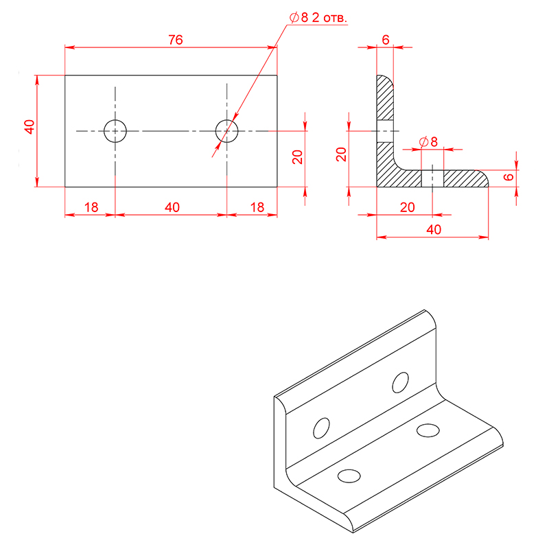 8203s | Стальной угловой соединитель 40х80 мм