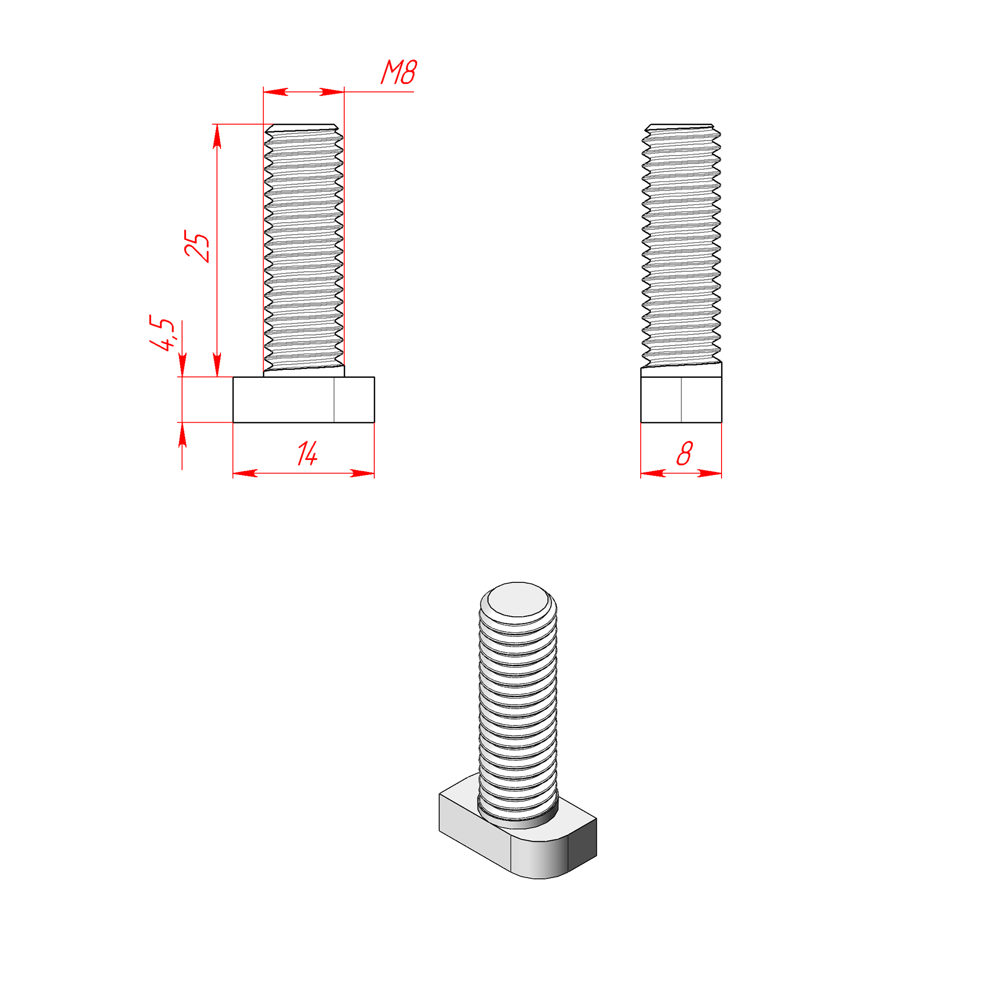 5068AL | Сухарь пазовый алюминиевый, паз 8, М8, серия 30