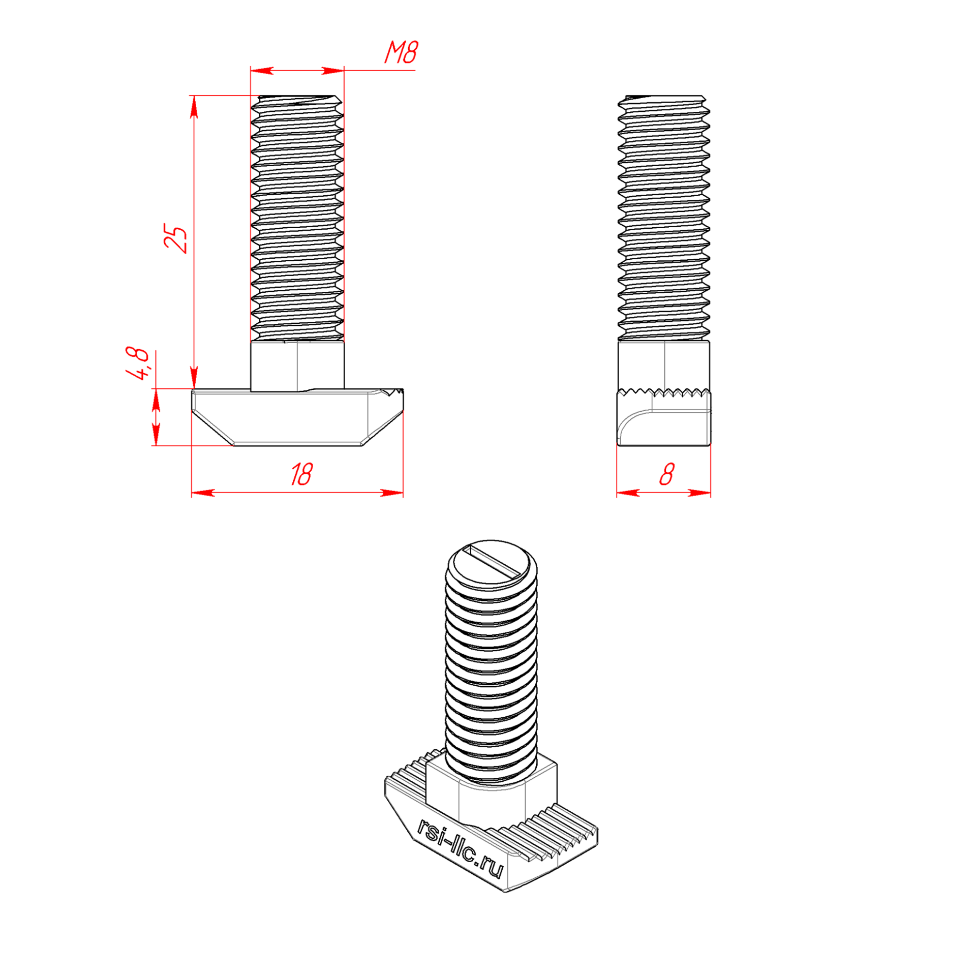 5071AL | Сухарь пазовый алюминиевый, паз 8, М8, серия 40
