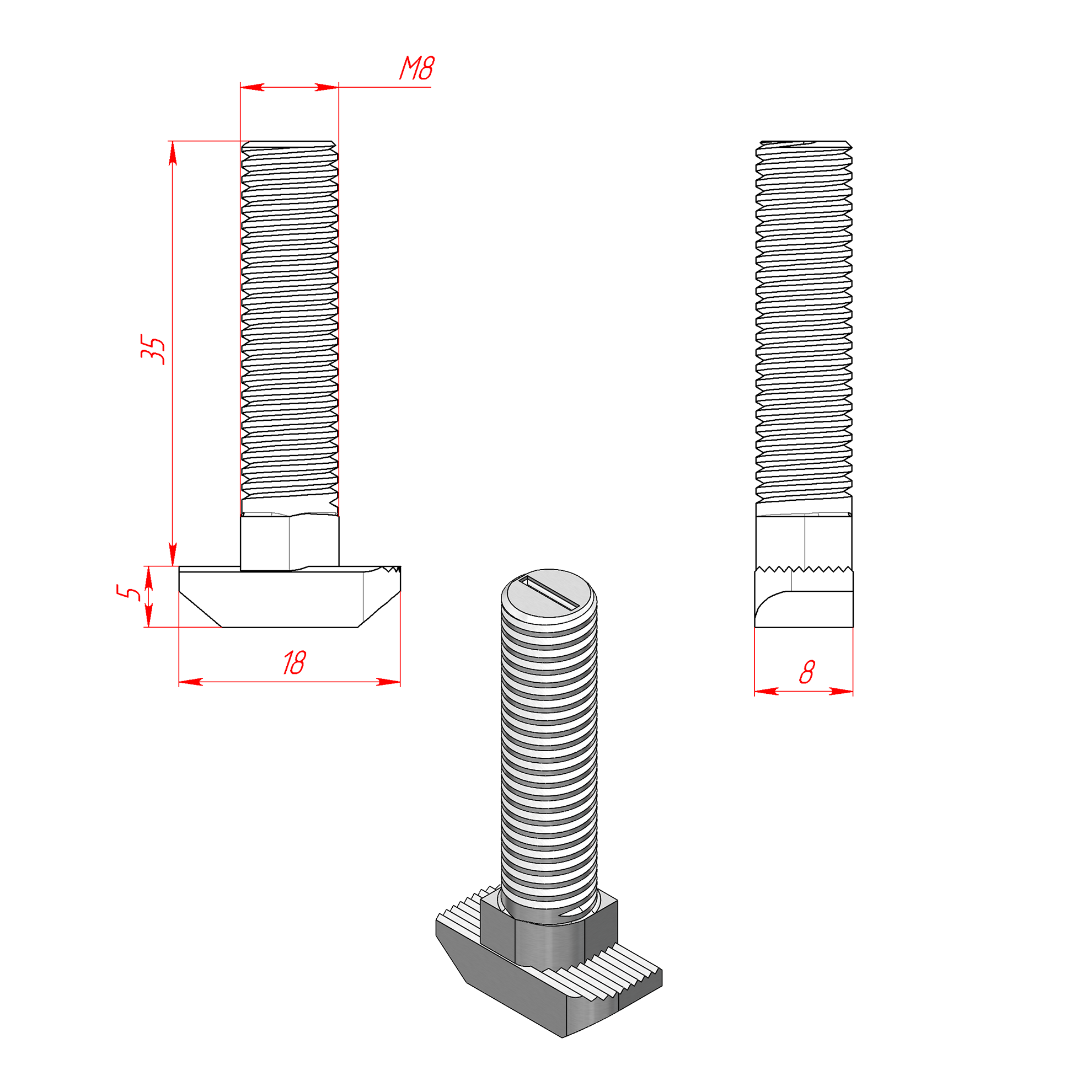 5071AL | Сухарь пазовый алюминиевый, паз 8, М8, серия 40
