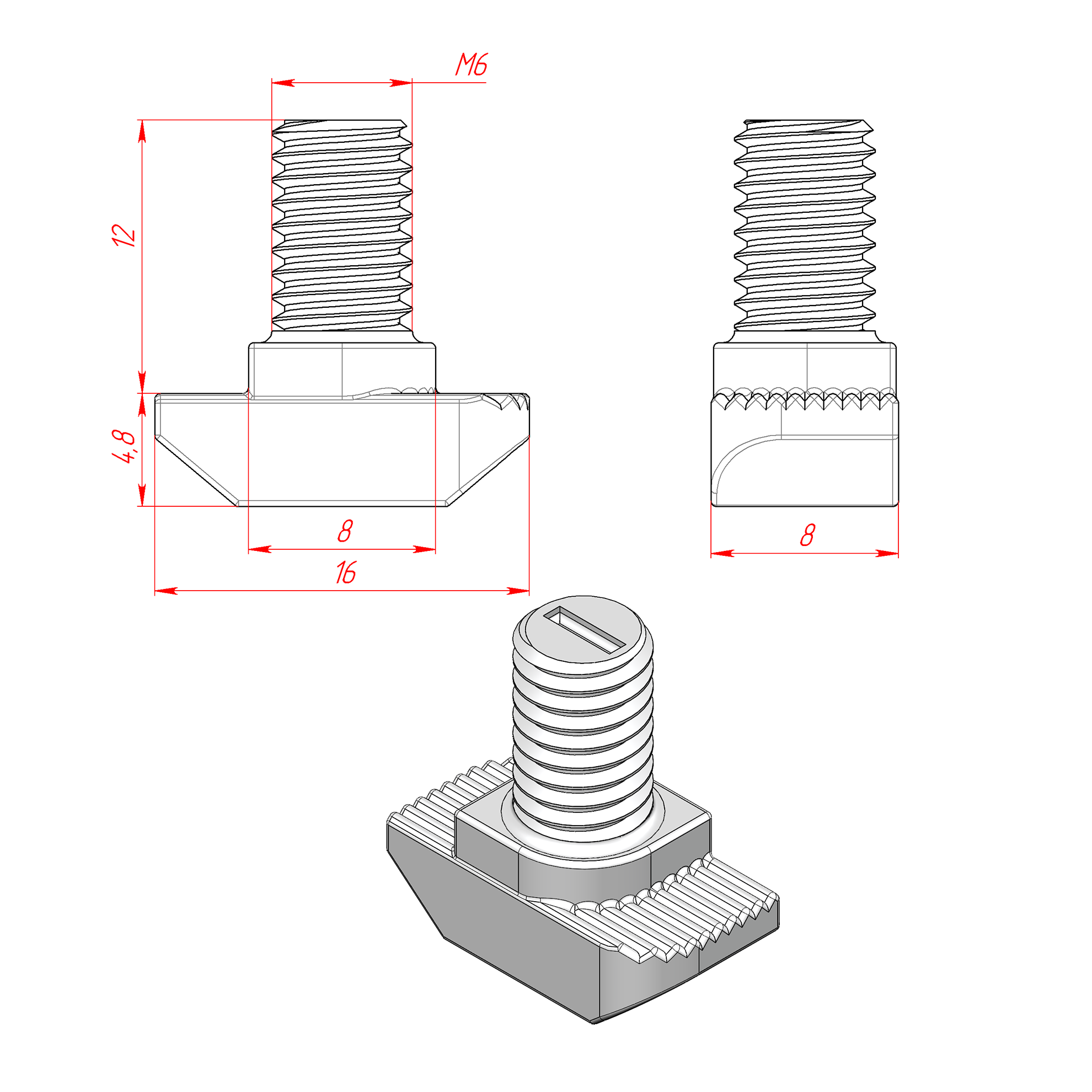 5067AL | Сухарь пазовый алюминиевый, паз 8, М6, серия 30