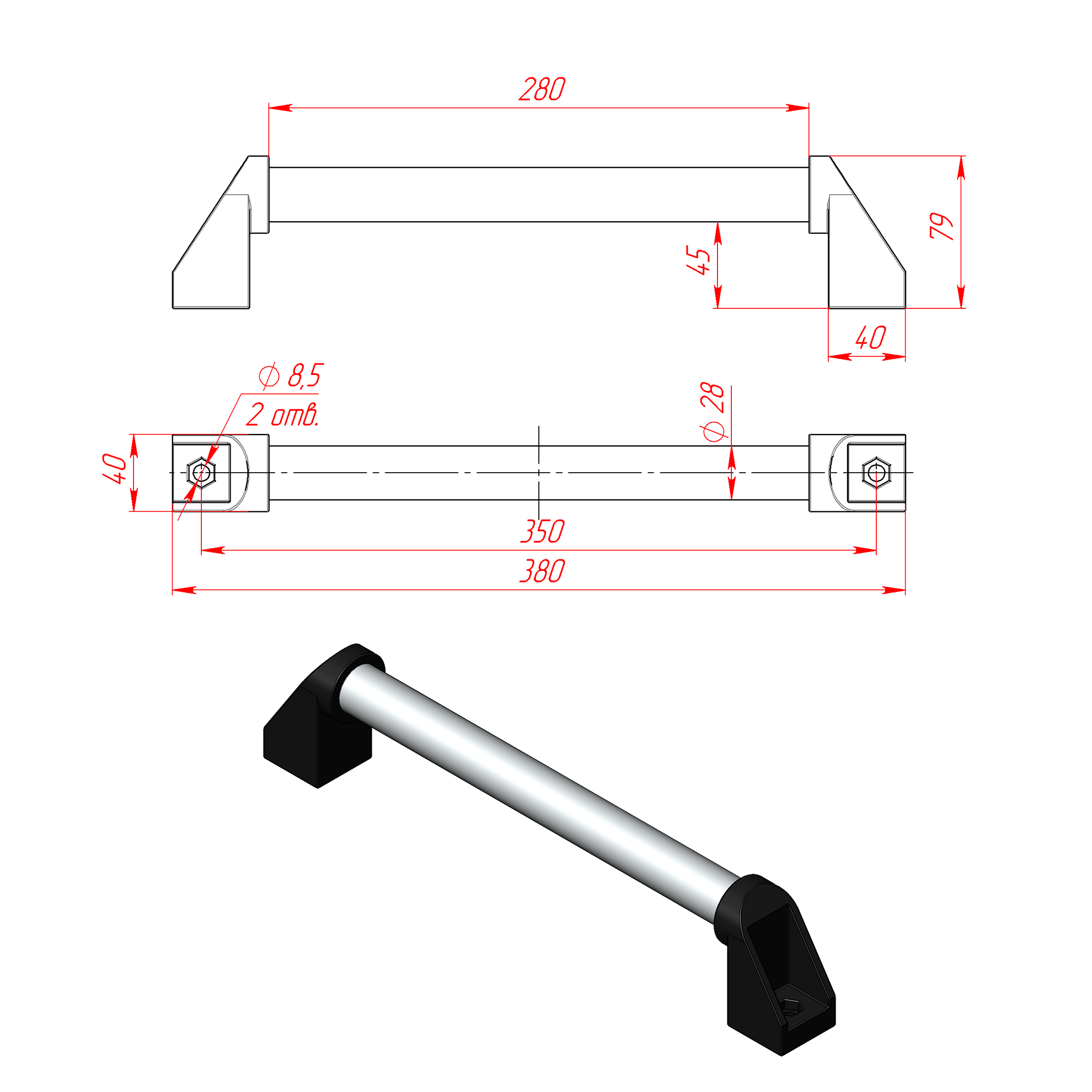 | HB-D28-END | Концевой кронштейн для ручек из трубы D28 | 2 шт. | |