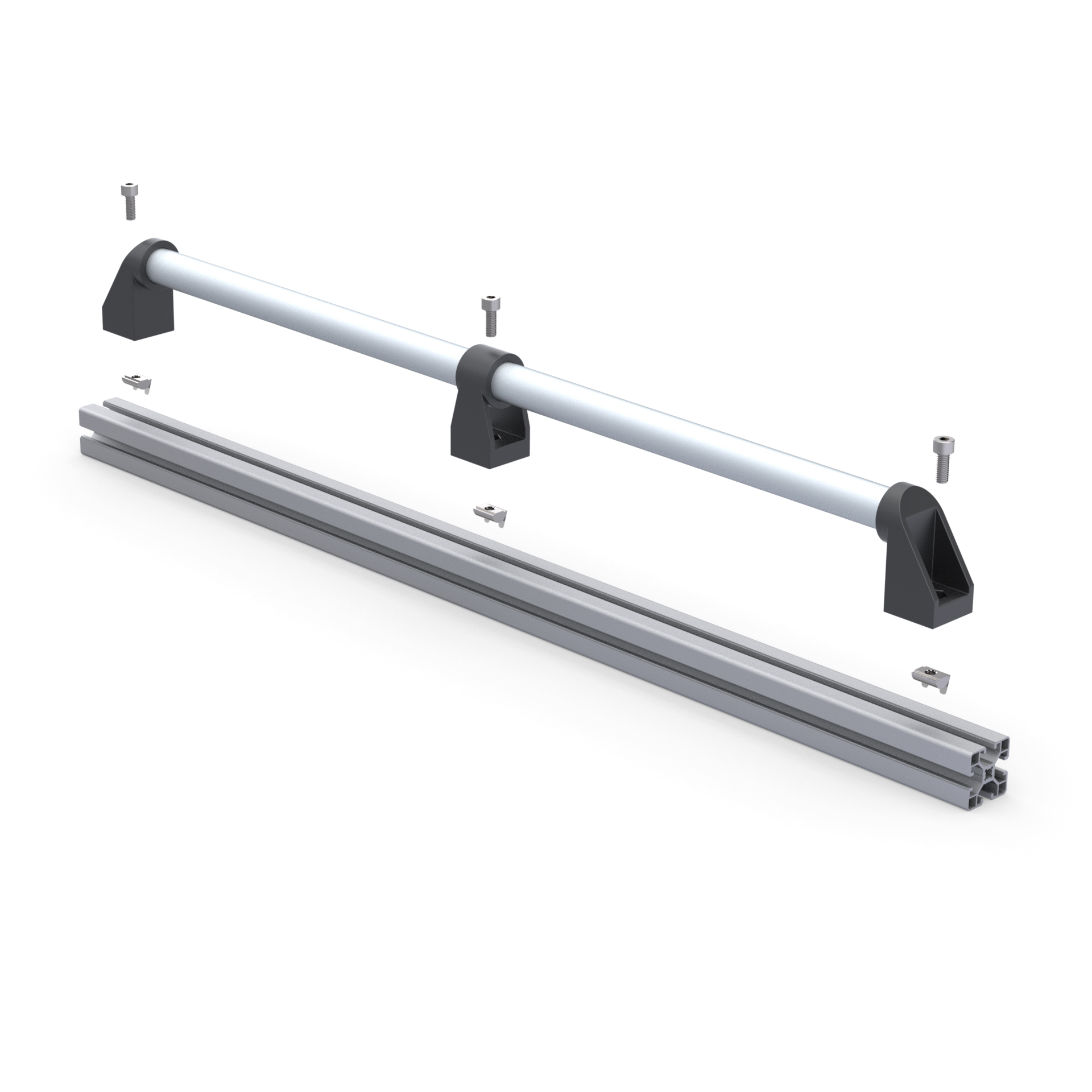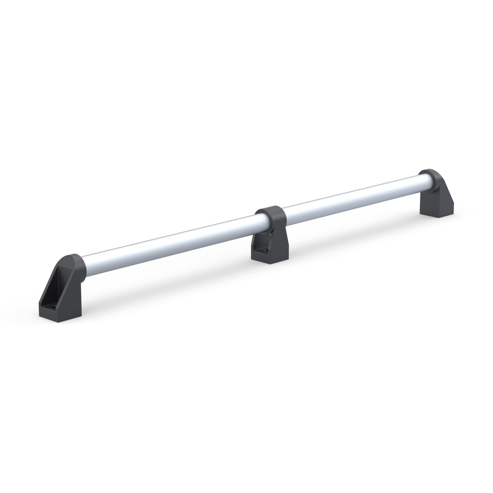 Дверная алюминиевая ручка DH28-L800-E2-C1 из алюминиевой анодированной круглой трубы с наружным диаметром 28 мм, двух боковых концевых нейлоновых кронштейнов и одного центрального. Длина ручки - 800 мм.
