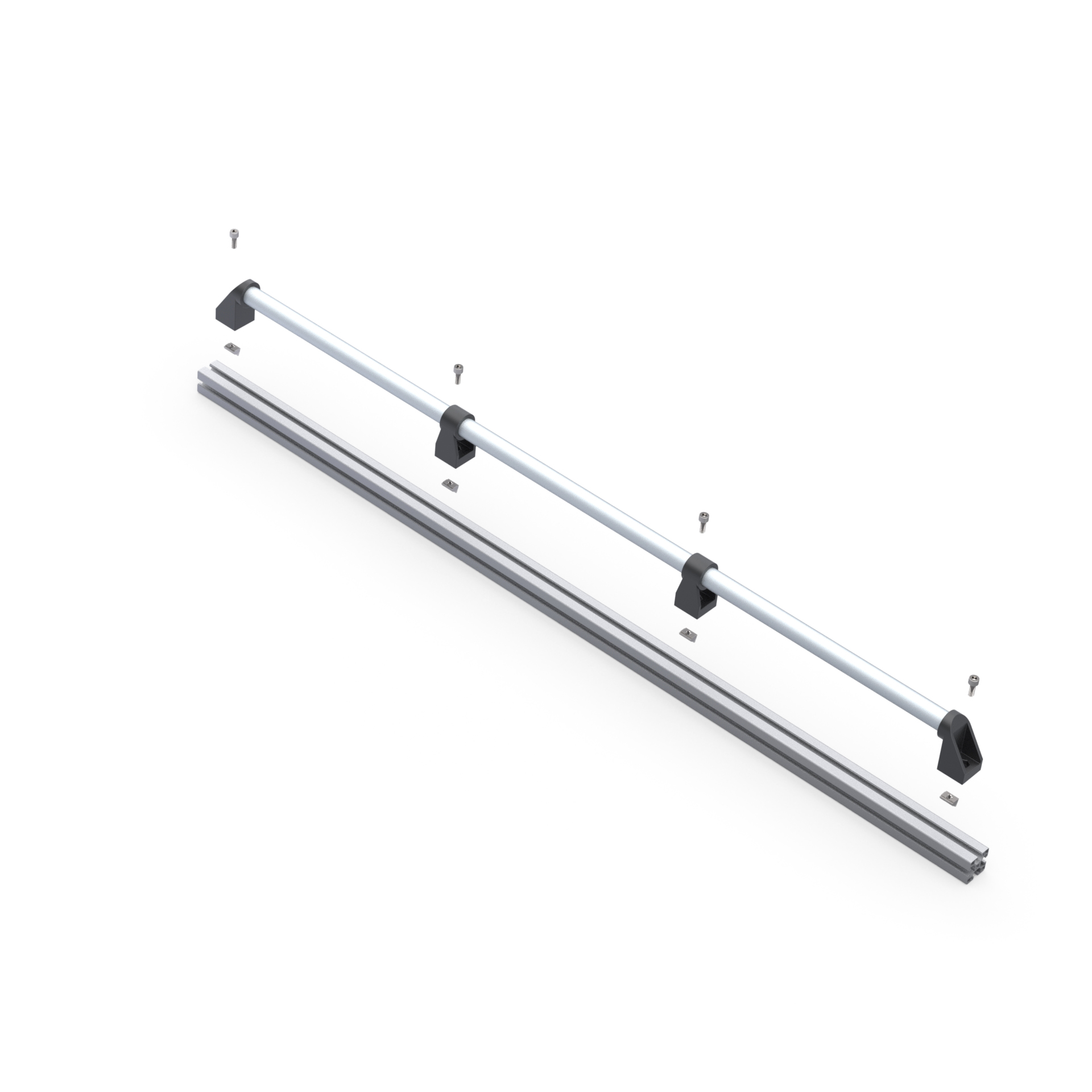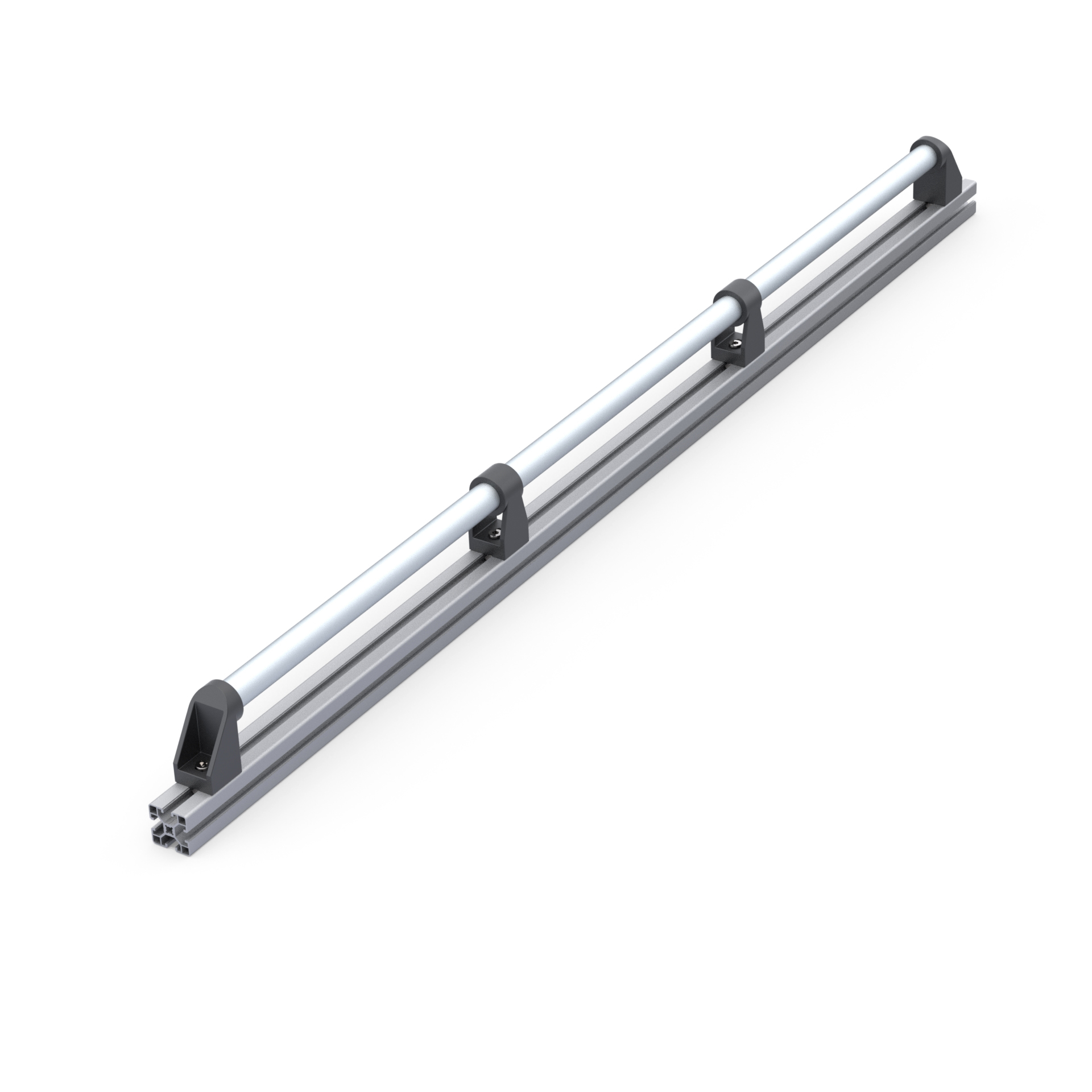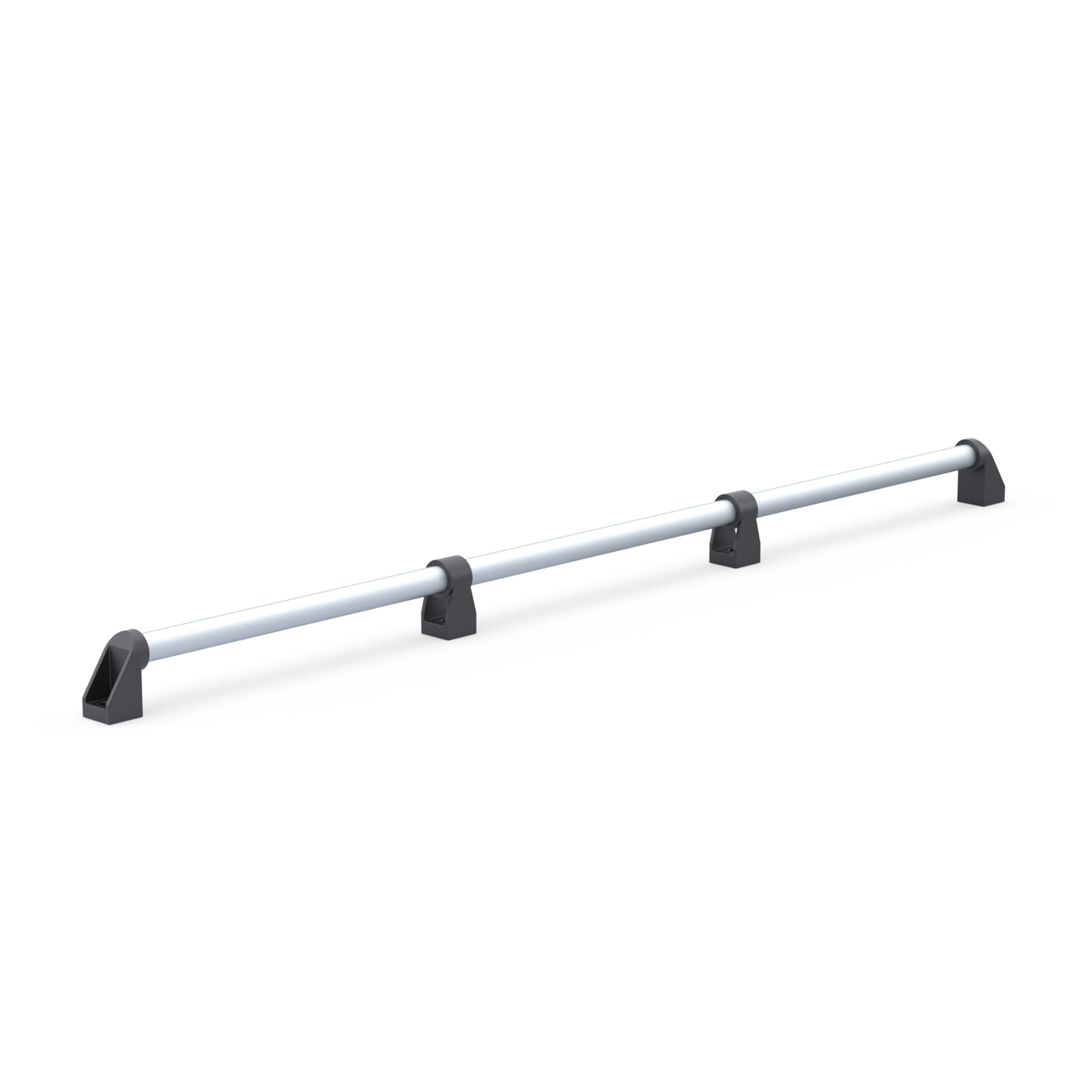 Дверная алюминиевая ручка DH28-L1400-E2-C1 из алюминиевой анодированной круглой трубы с наружным диаметром 28 мм, двух боковых концевых нейлоновых кронштейнов и двух центральных. Длина ручки - 1400 мм.