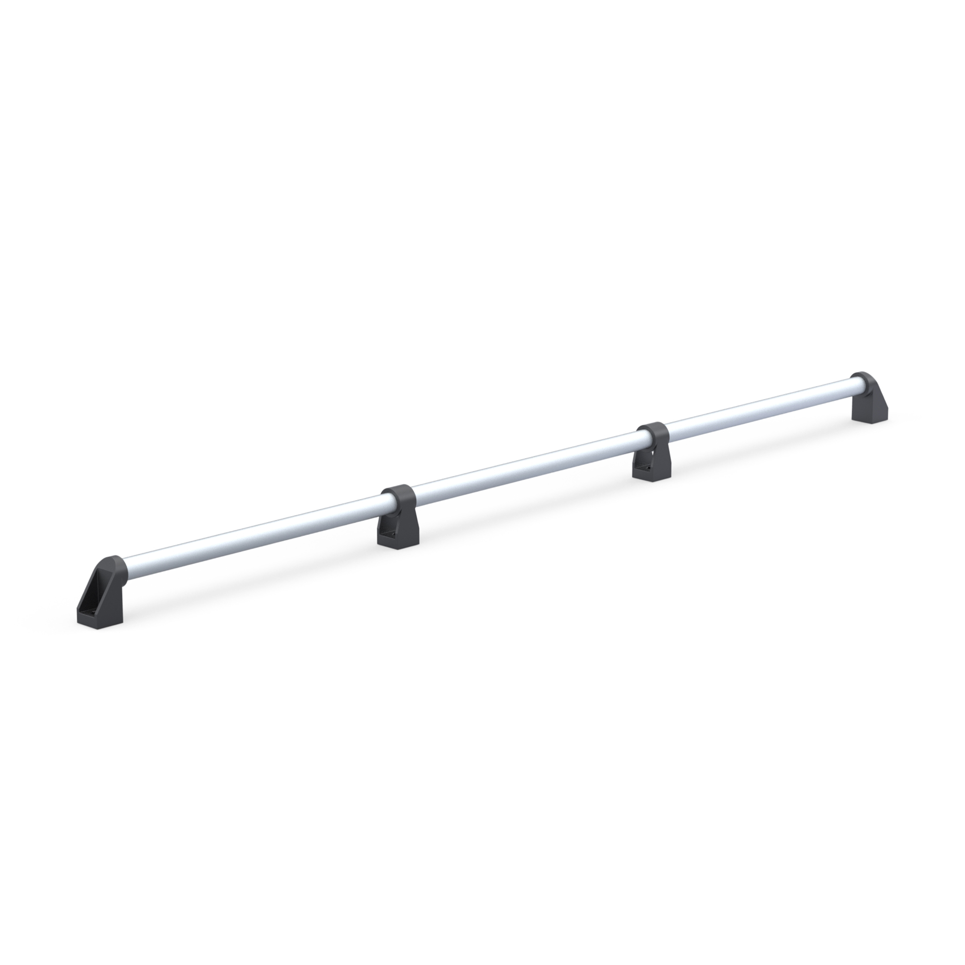 Дверная алюминиевая ручка DH28-L1500-E2-C1 из алюминиевой анодированной круглой трубы с наружным диаметром 28 мм, двух боковых концевых нейлоновых кронштейнов и двух центральных. Длина ручки - 1500 мм.
