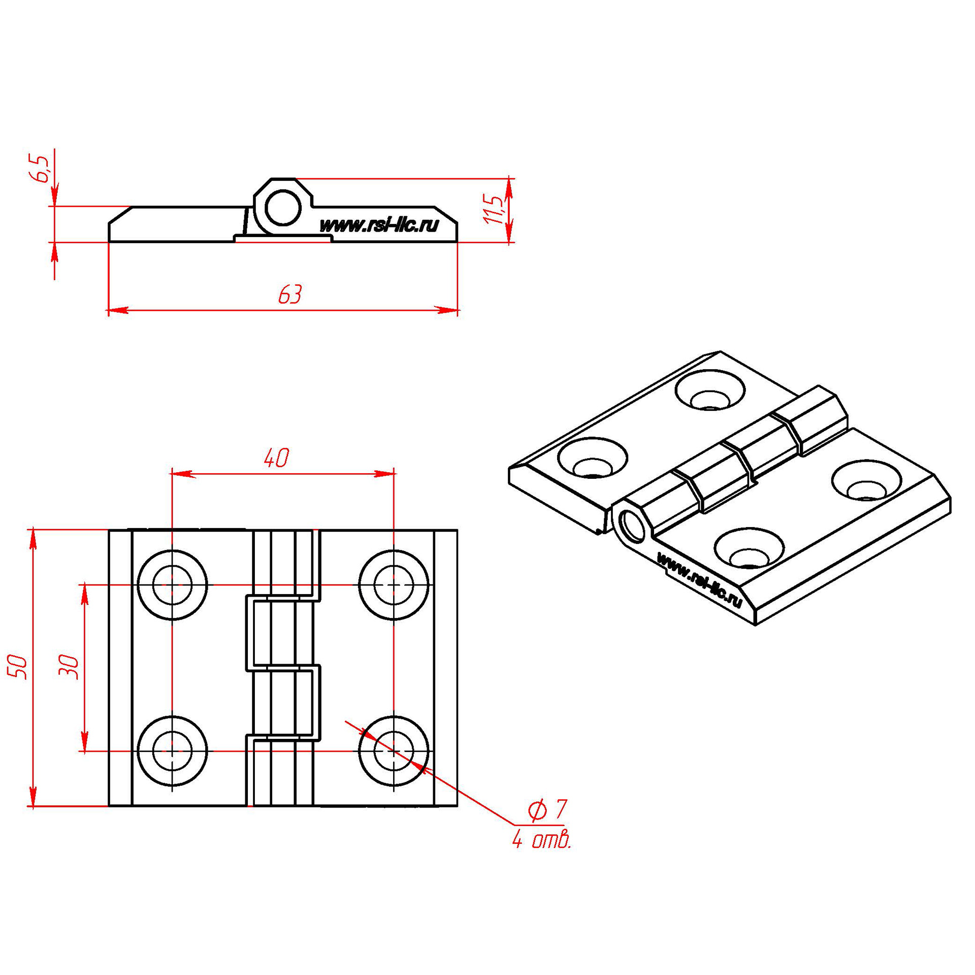 3121 | Алюминиевый дверной шарнир, усиленный, для профилей серии 40