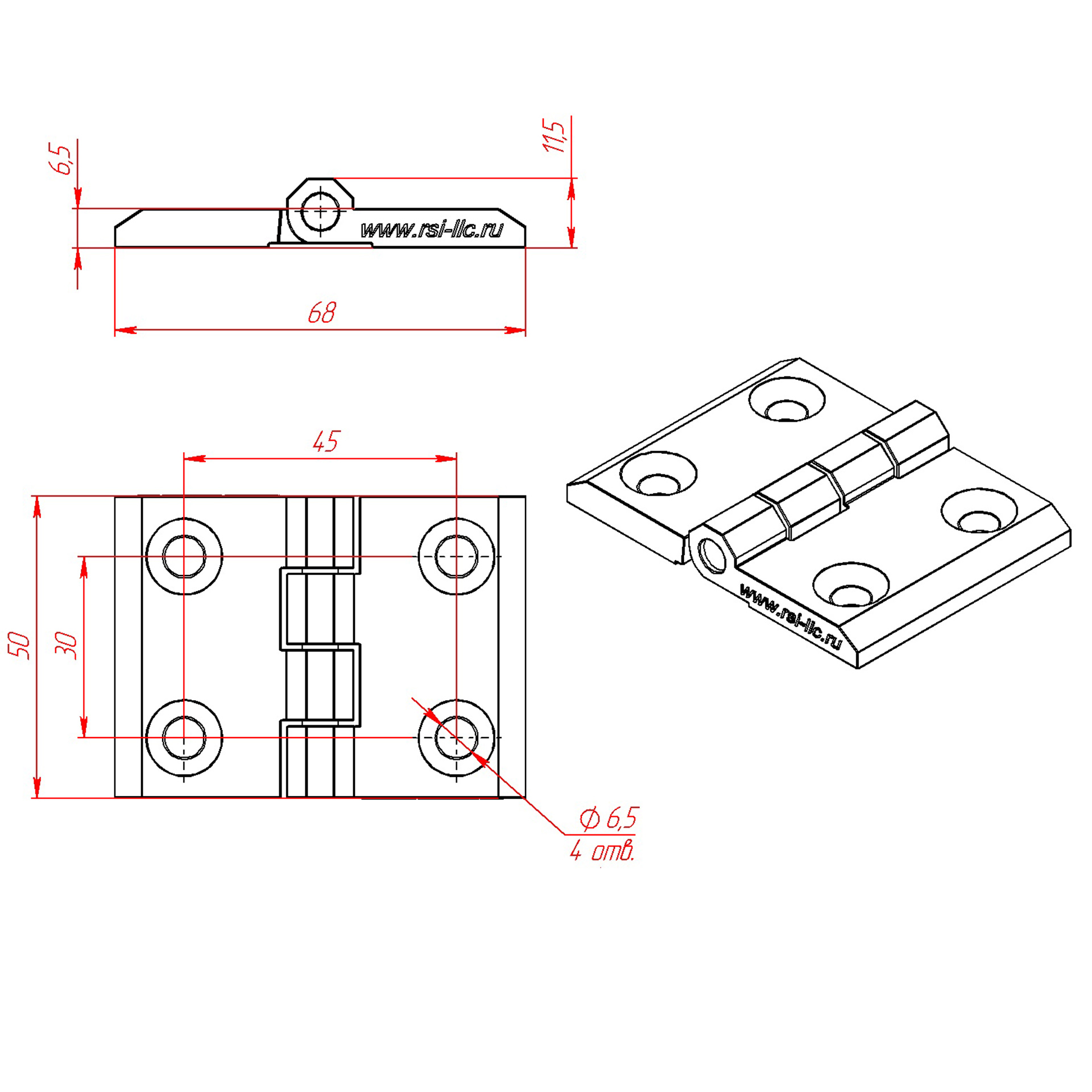3122 | Алюминиевый дверной шарнир, усиленный, для профилей серии 45 мм