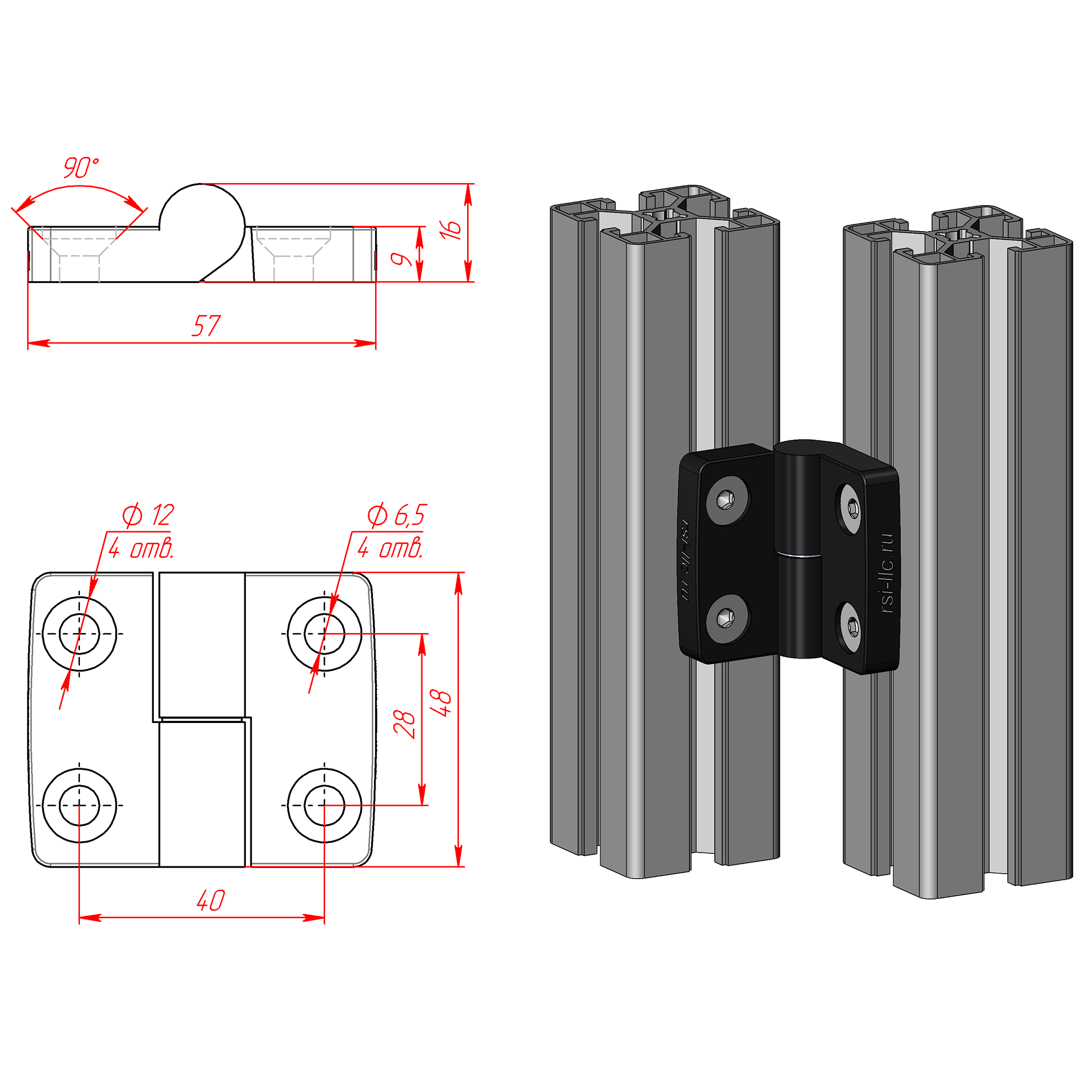 3026 | Алюминиевая дверная петля, для профилей 40х40 мм