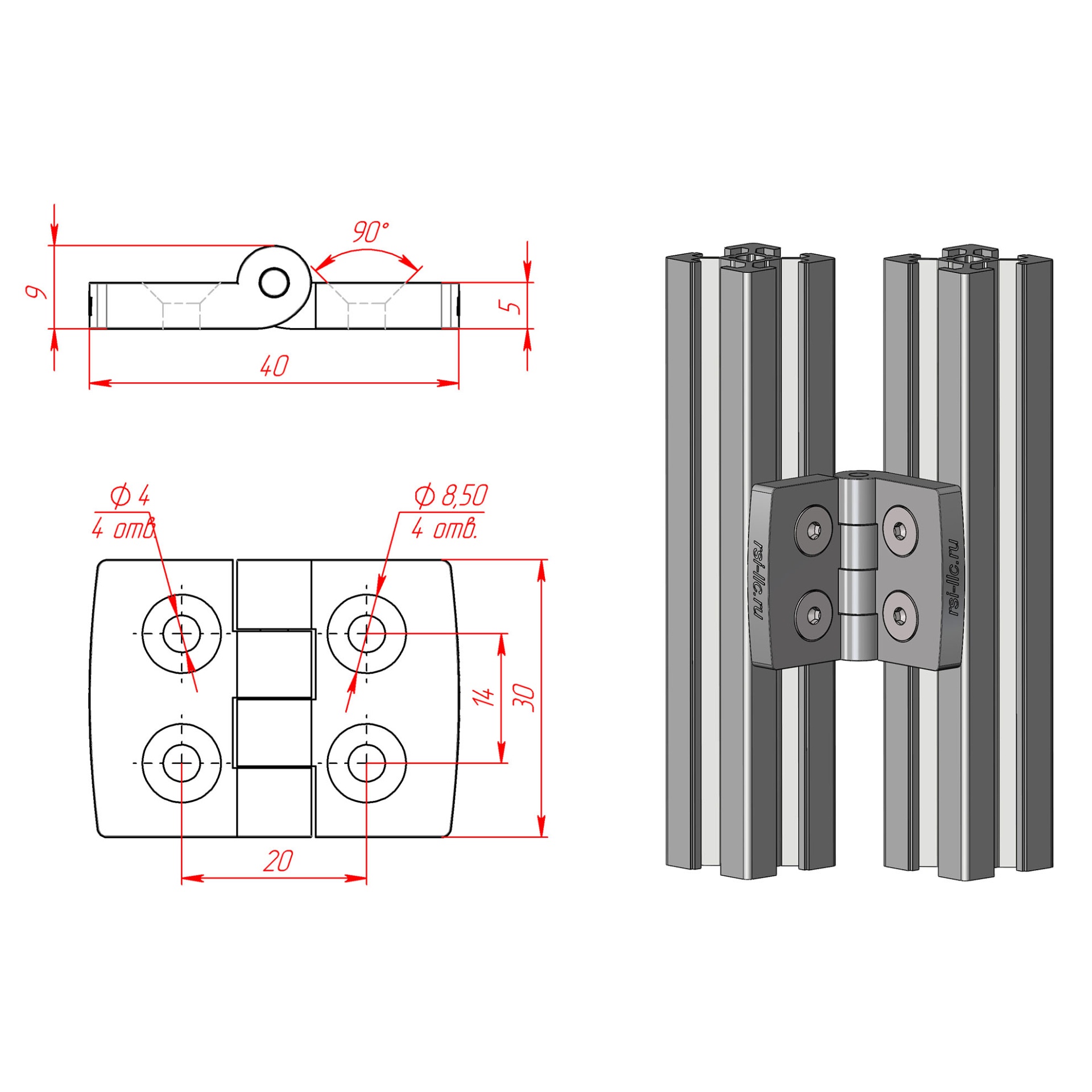 3012-GRAY - это надежная и долговечная пластиковая петля, предназначенная для установки на двери, изготовленные из конструкционных профилей 20х20 мм.