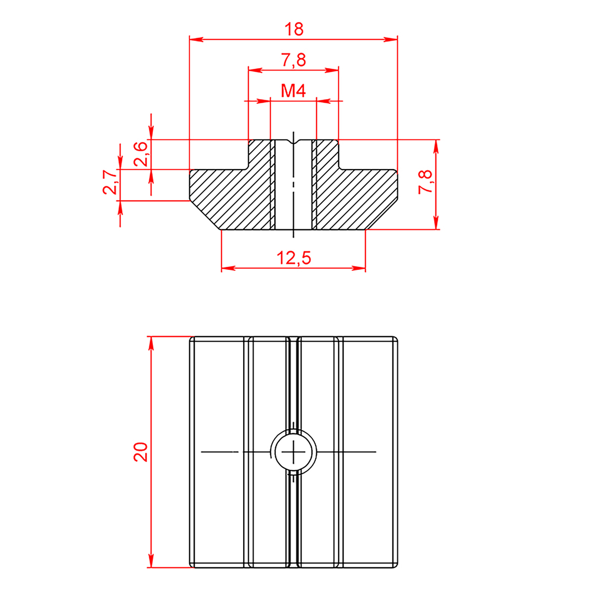 5185AL | Сухарь пазовый алюминиевый, паз 8, М4, серия 40
