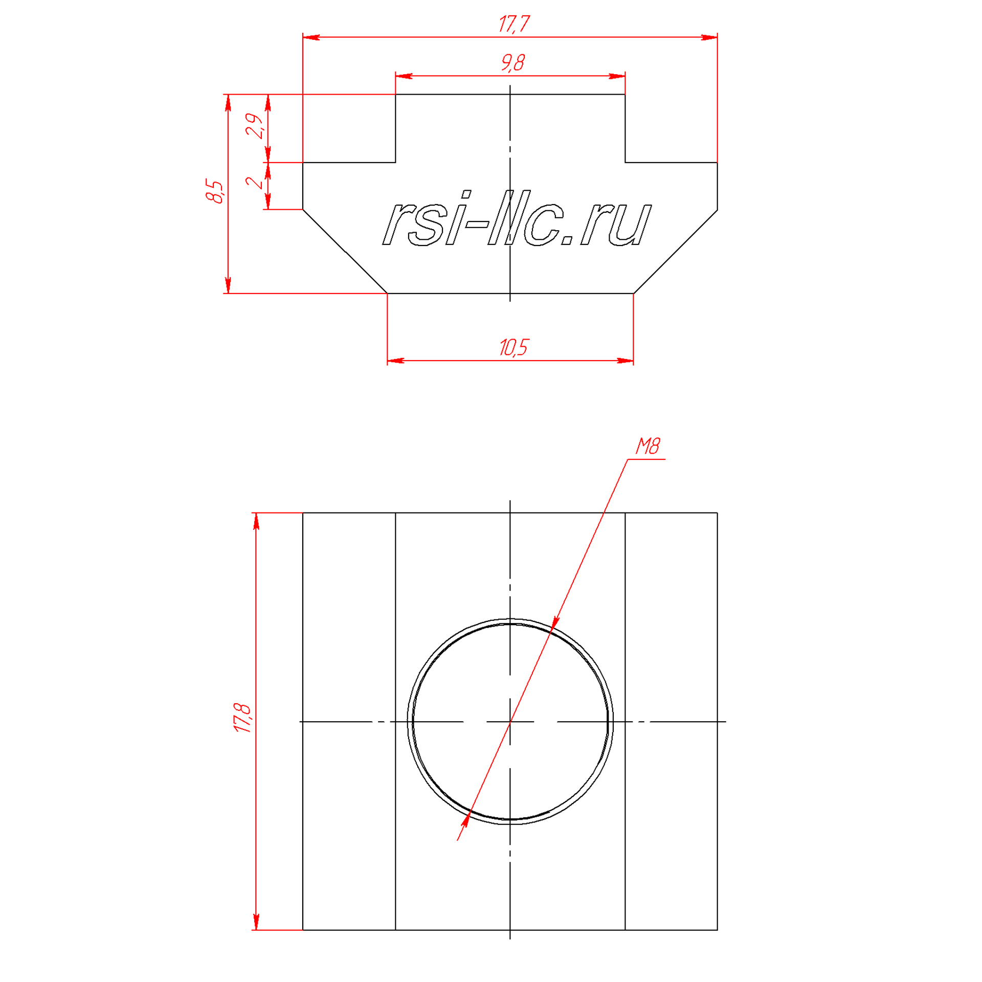5074AL | Сухарь пазовый алюминиевый, паз 10, М8