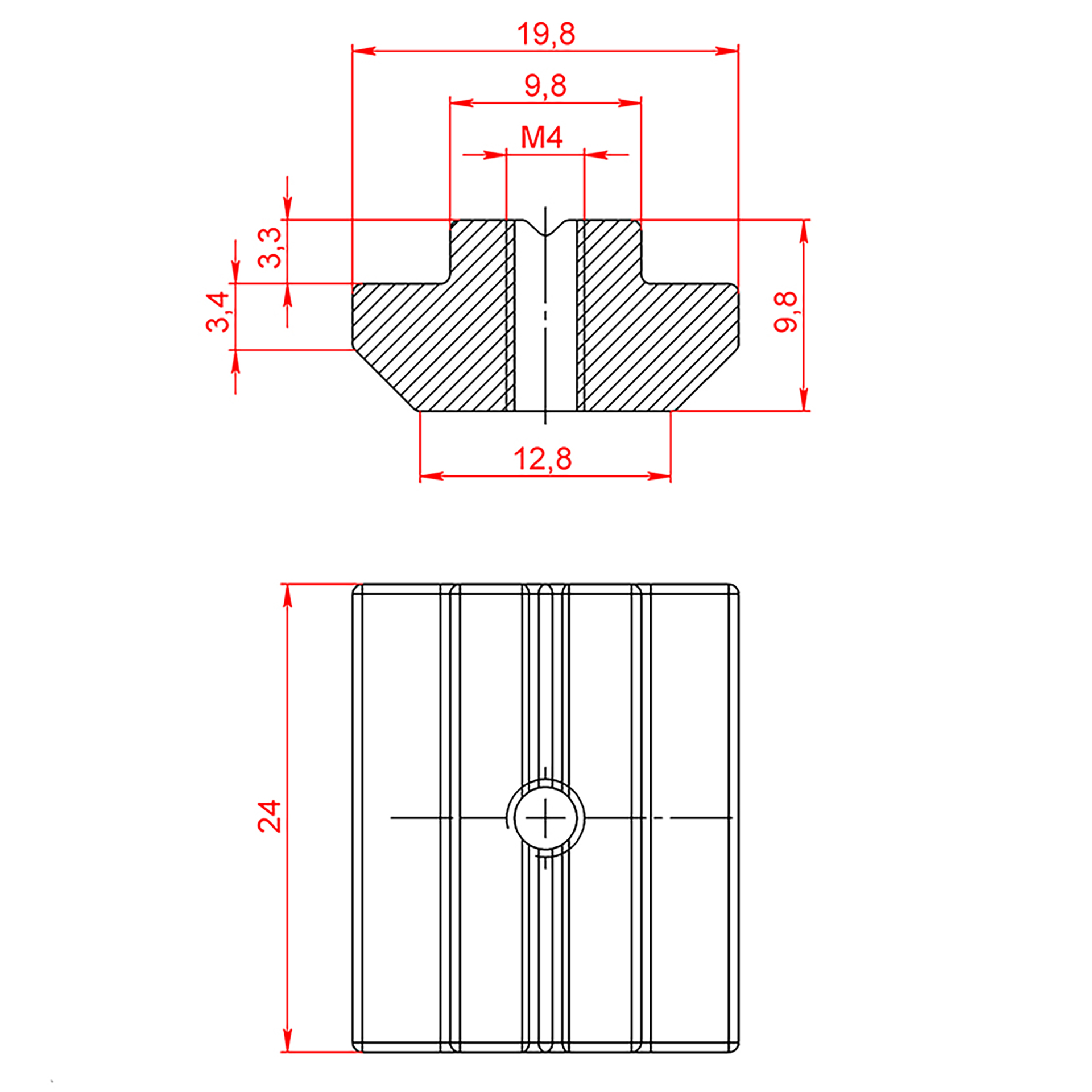 5186AL | Сухарь пазовый алюминиевый, паз 10, М4