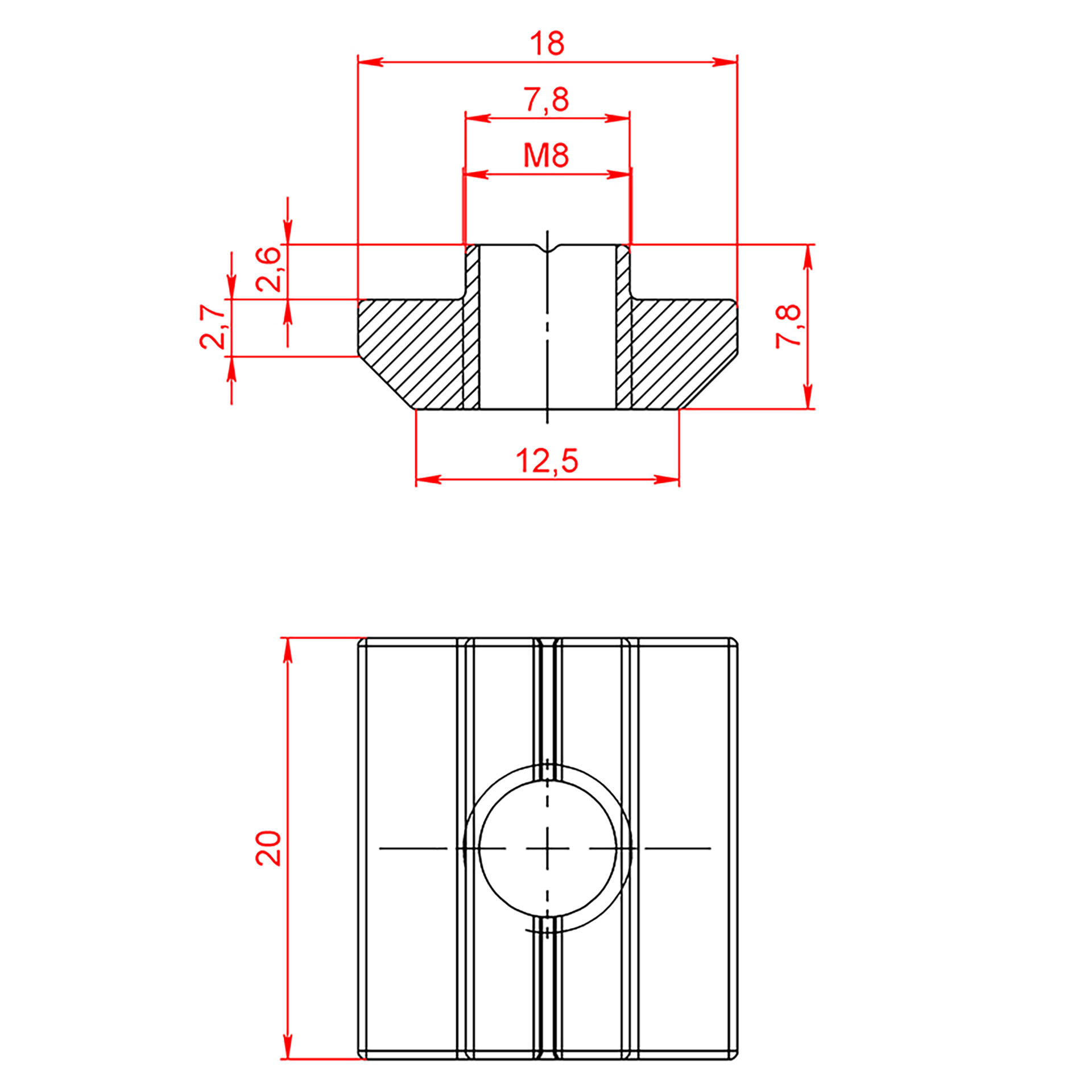 5071AL | Сухарь пазовый алюминиевый, паз 8, М8, серия 40