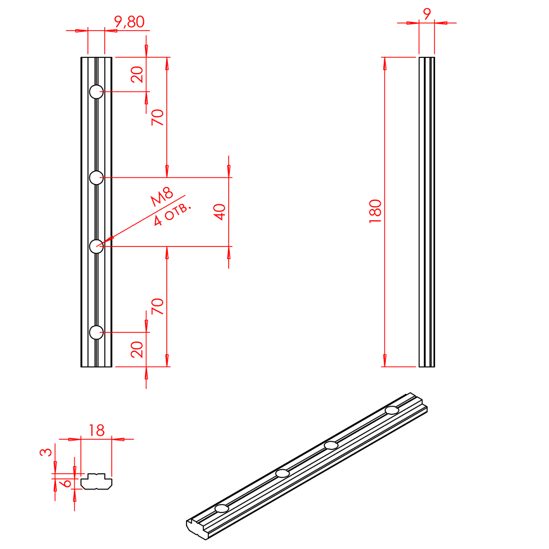 2020 | Линейный соединитель стальной 180 мм, паз 10