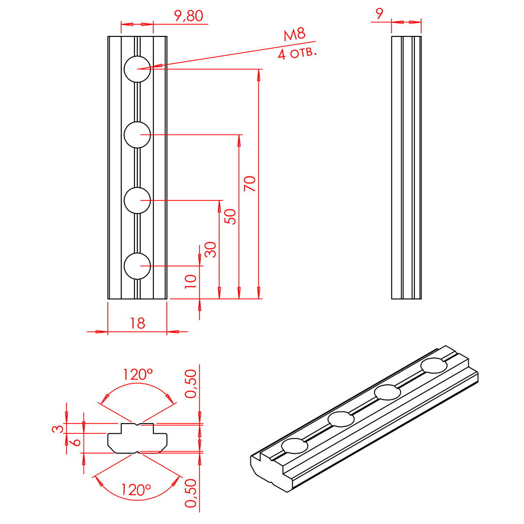 2020 | Линейный соединитель стальной 180 мм, паз 10
