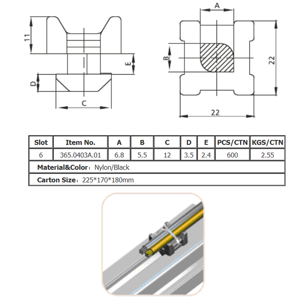 Clips 2040 | Клипса кабельная в паз профиля 20х40