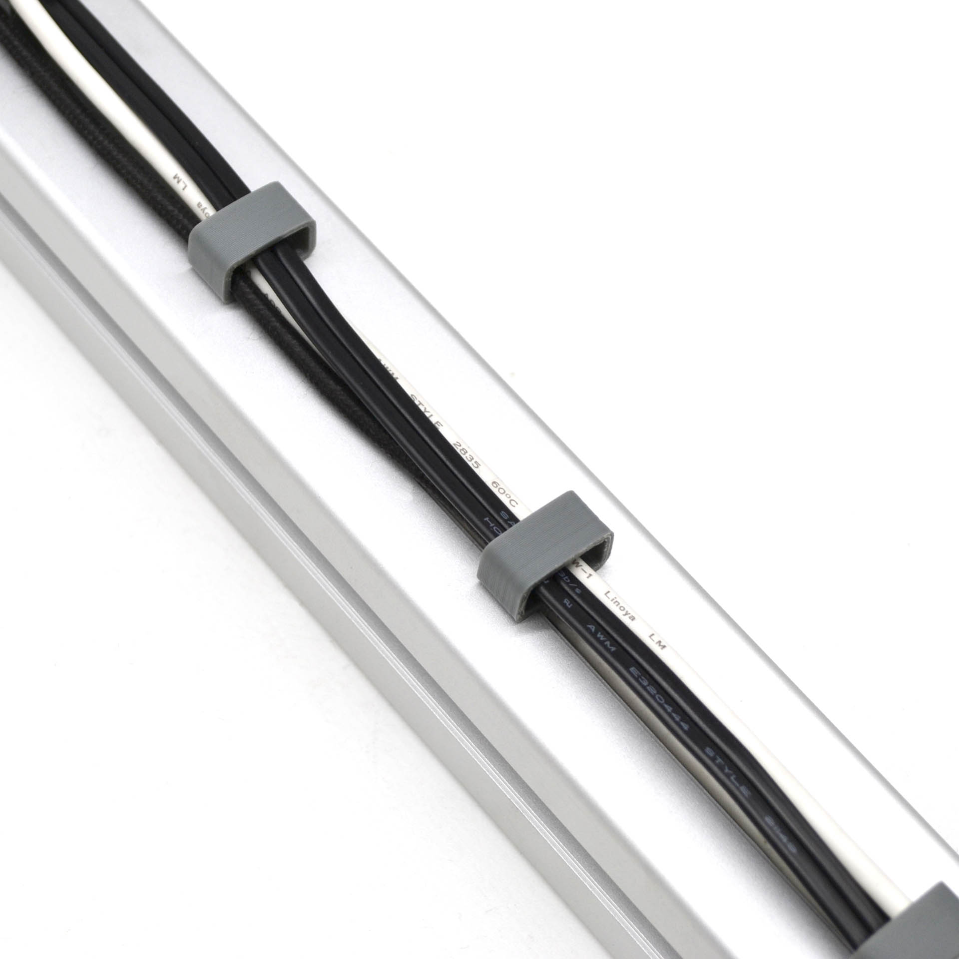 Кабельная клипса для фиксирования проводов параллельно профилю. Подходит для серии 40 с пазом 8 мм.
